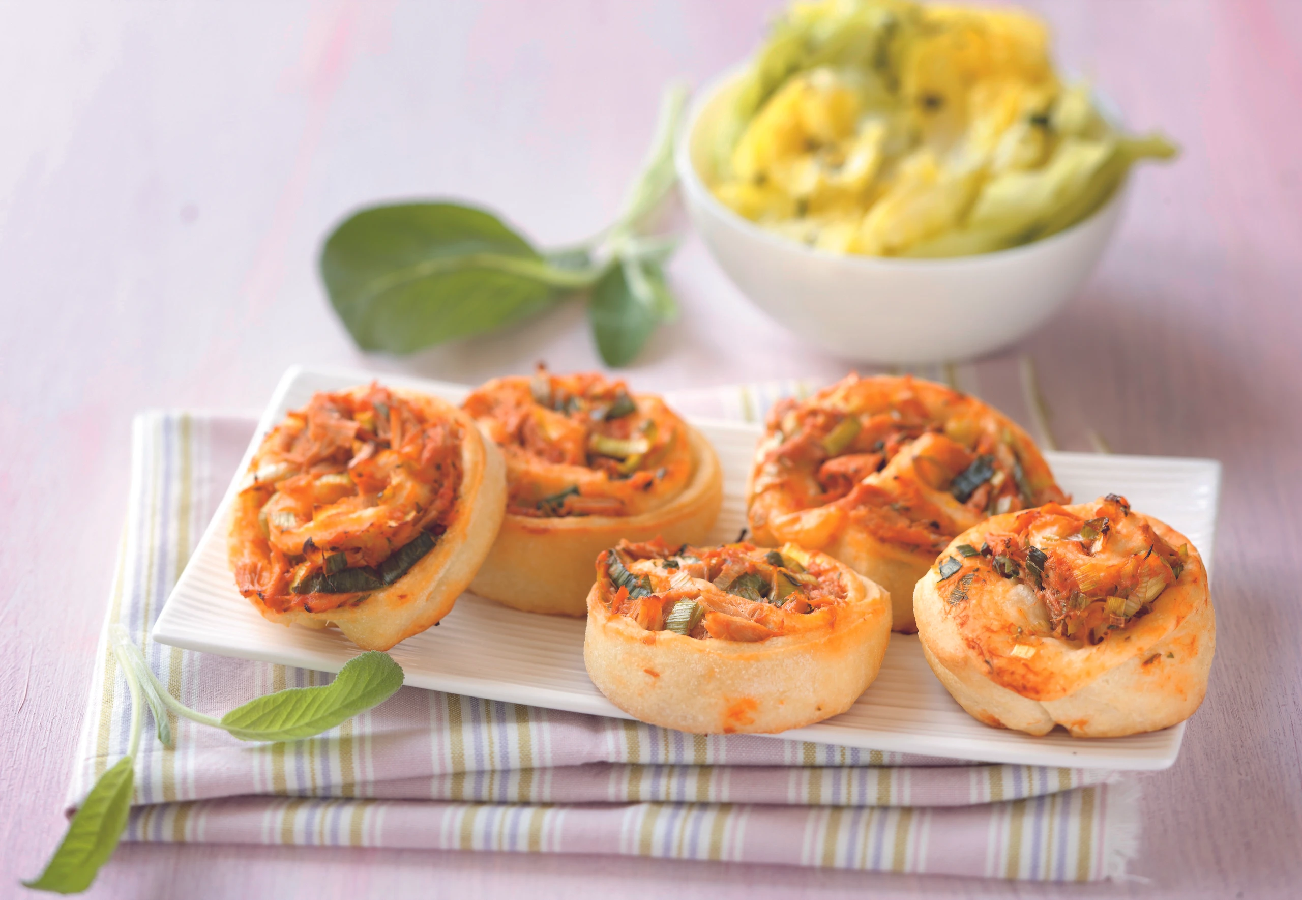 Pikante Thunfisch-Pizzaröllchen mit buntem Salat