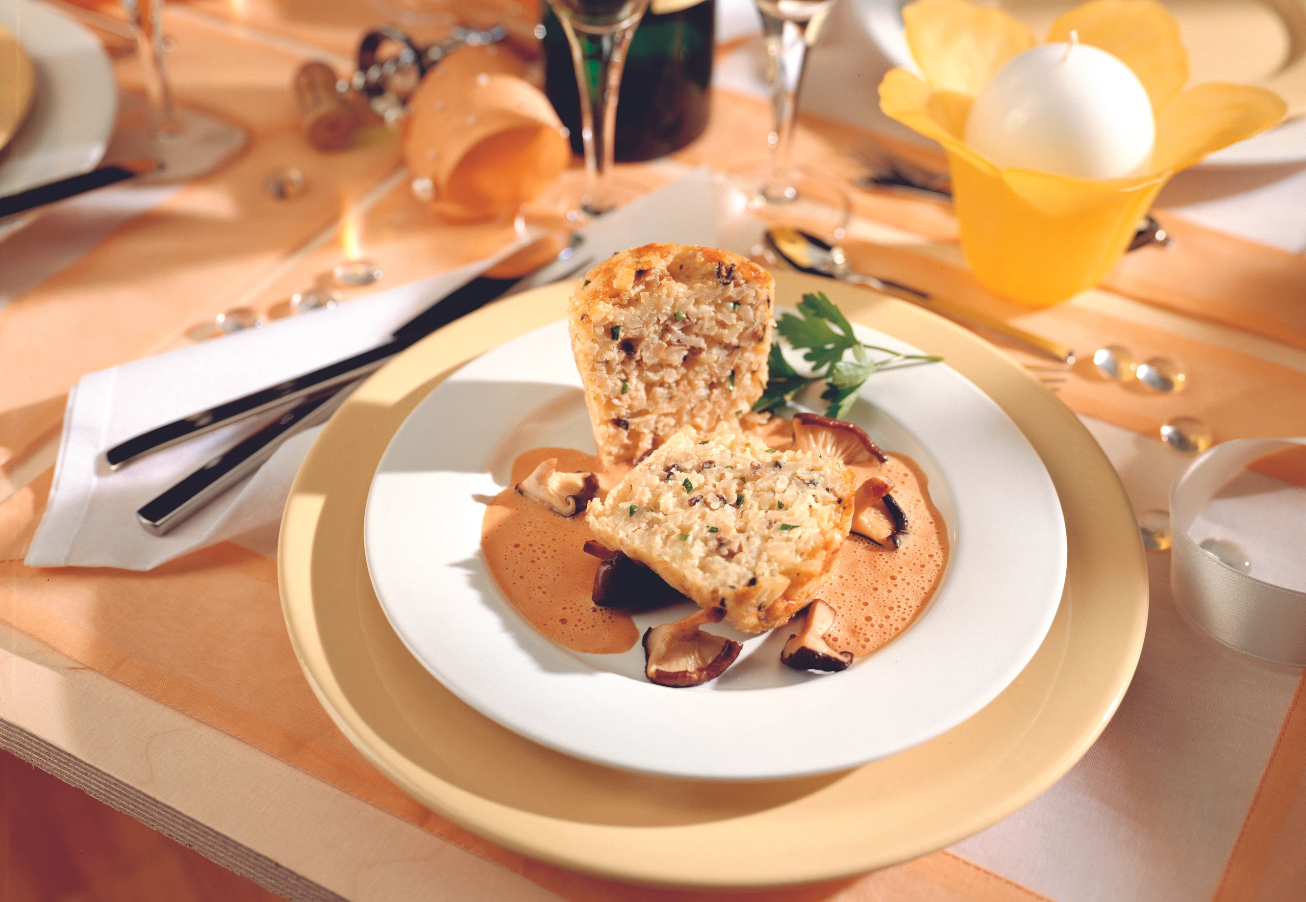 - Eier in Dotter und Klar trennen. Restliche Butter oder Margarine gut cremig rühren, Dotter, dann Reis, Schwammerln, Käse, Grieß und Kräuter einrühren. Eiklar zu cremigem Schnee schlagen und unter die Masse heben.