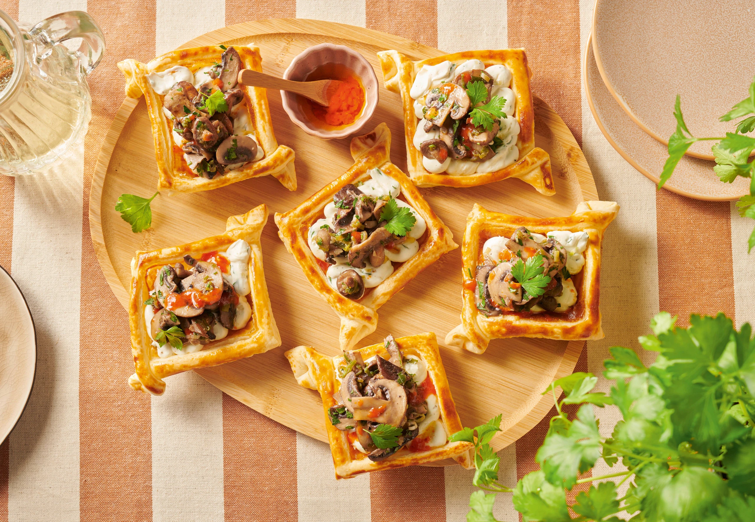 Pilze darauf verteilen. Mit Chiliöl beträufeln und mit Petersilie garnieren.