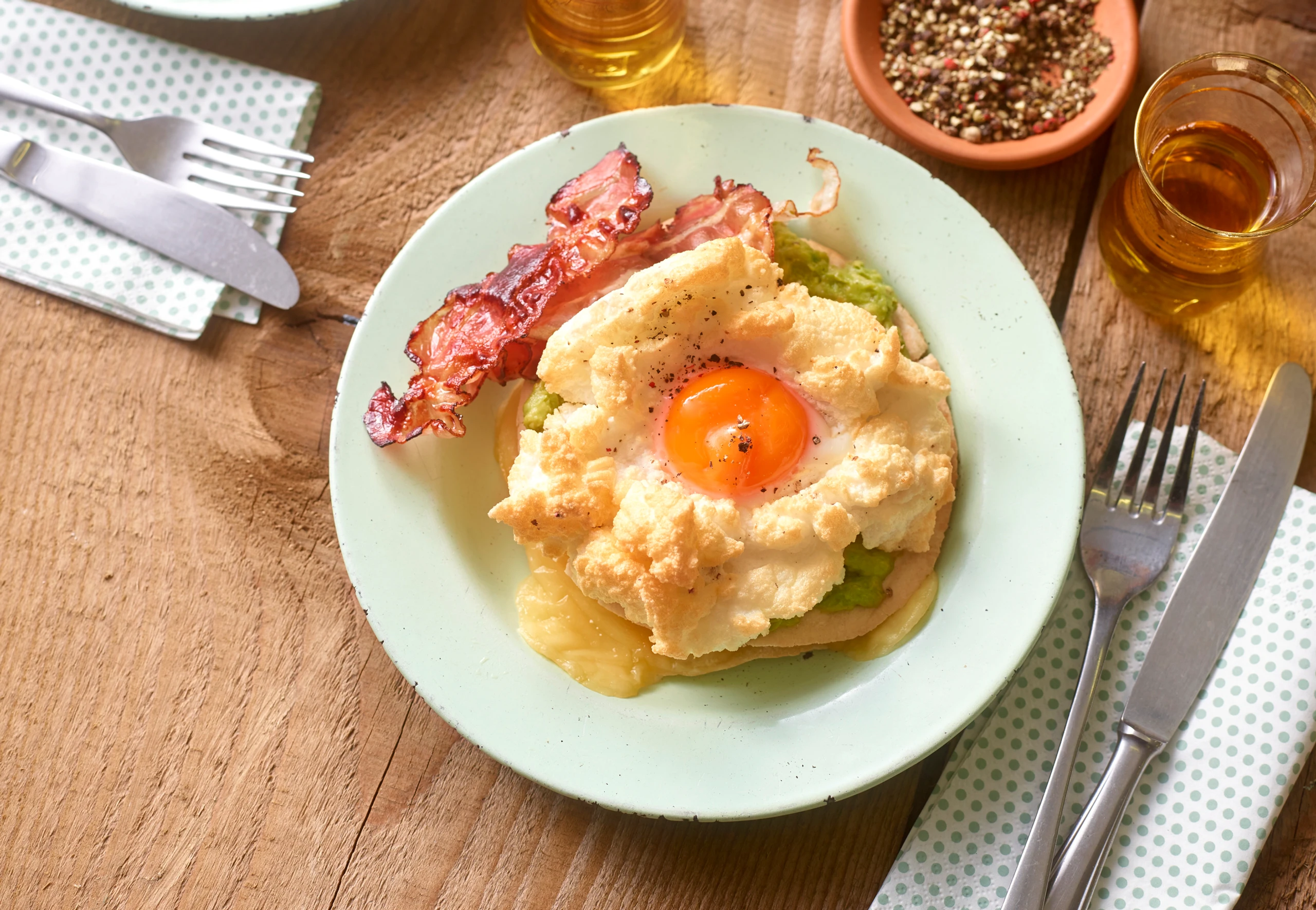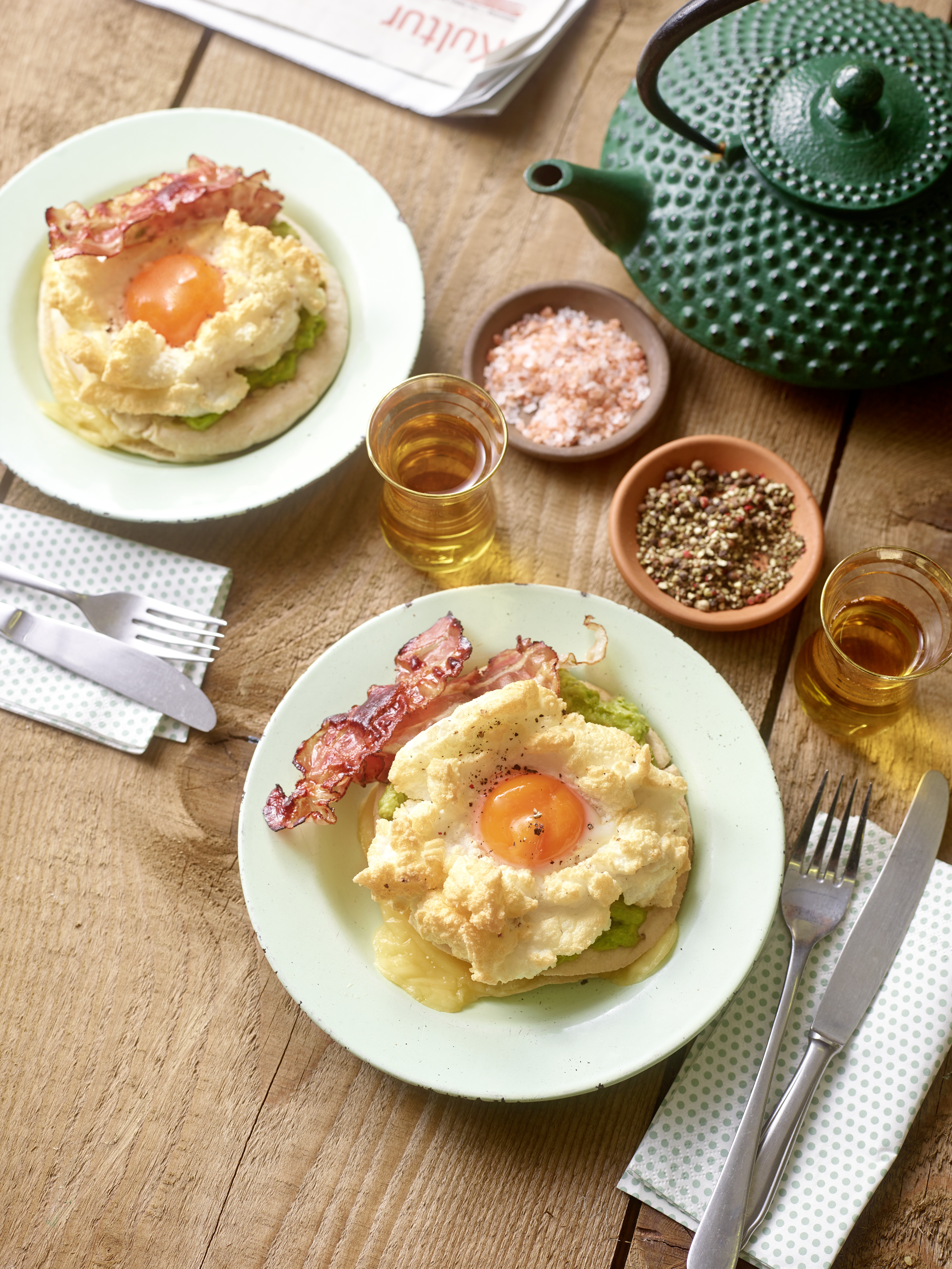 Pitas mit Cloud Eggs und Avocado