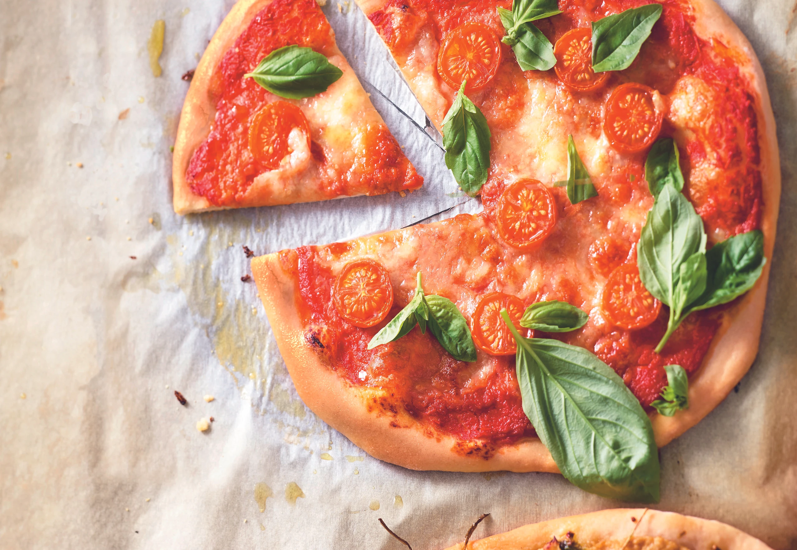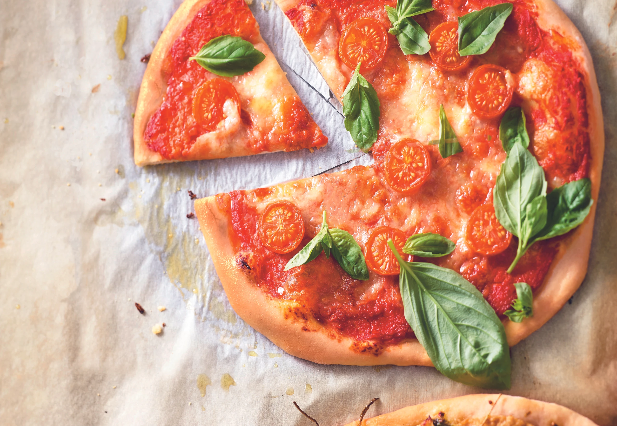 Gusto-Tipp: Die ideale Pizza ist knusprig und saftig. Damit sie so gelingt, müssen erstens Boden und Belag dünn sein, zweitens benötigt sie viel Hitze. Schalten Sie den Backofen auf maximale Temperatur, mindestens 250, besser 270 Grad. Damit es am Anfang zu keinem Temperaturverlust kommt, empfiehlt es sich, das Backblech mit aufzuheizen. Die Backzeiten für unsere Rezepte sind für 250°C bemessen, wenn Sie bei höherer Temperatur backen können, tun Sie es!