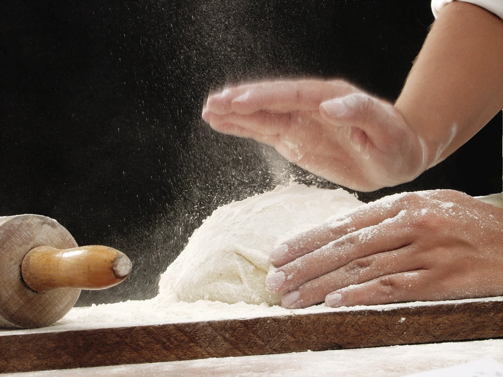 Mehle und Salz vermischen. Germ und Zucker in der Hälfte vom Wasser auflösen. Germmischung, übriges Wasser und Olivenöl zum Mehl geben und gut verkneten. Teig abdecken und an einem warmen Ort ca. 1 Stunde gehen lassen; dazwischen einmal zusammenschlagen.