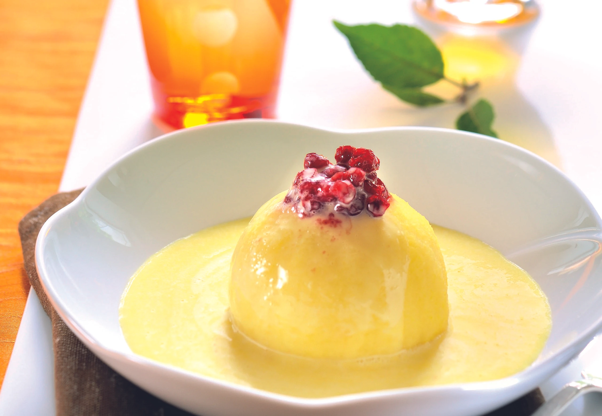 - Für die Sauce 6 EL von der Milch mit Zucker und Puddingpulver verrühren. Übrige Milch aufkochen, Puddingmischung einrühren und unter Rühren (Schneebesen) aufkochen.
