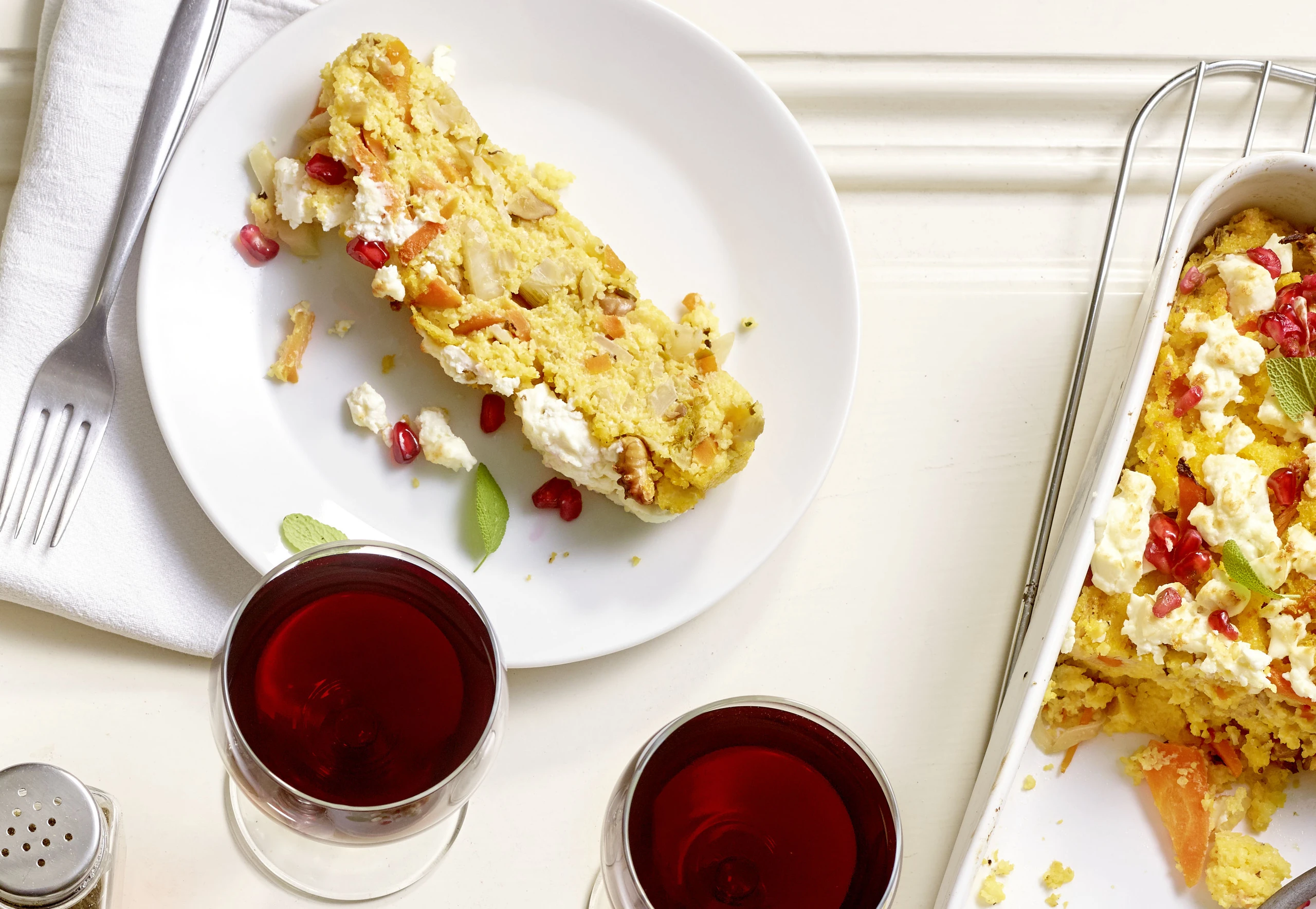 Polenta-Gemüseauflauf mit Feta und Granatapfel