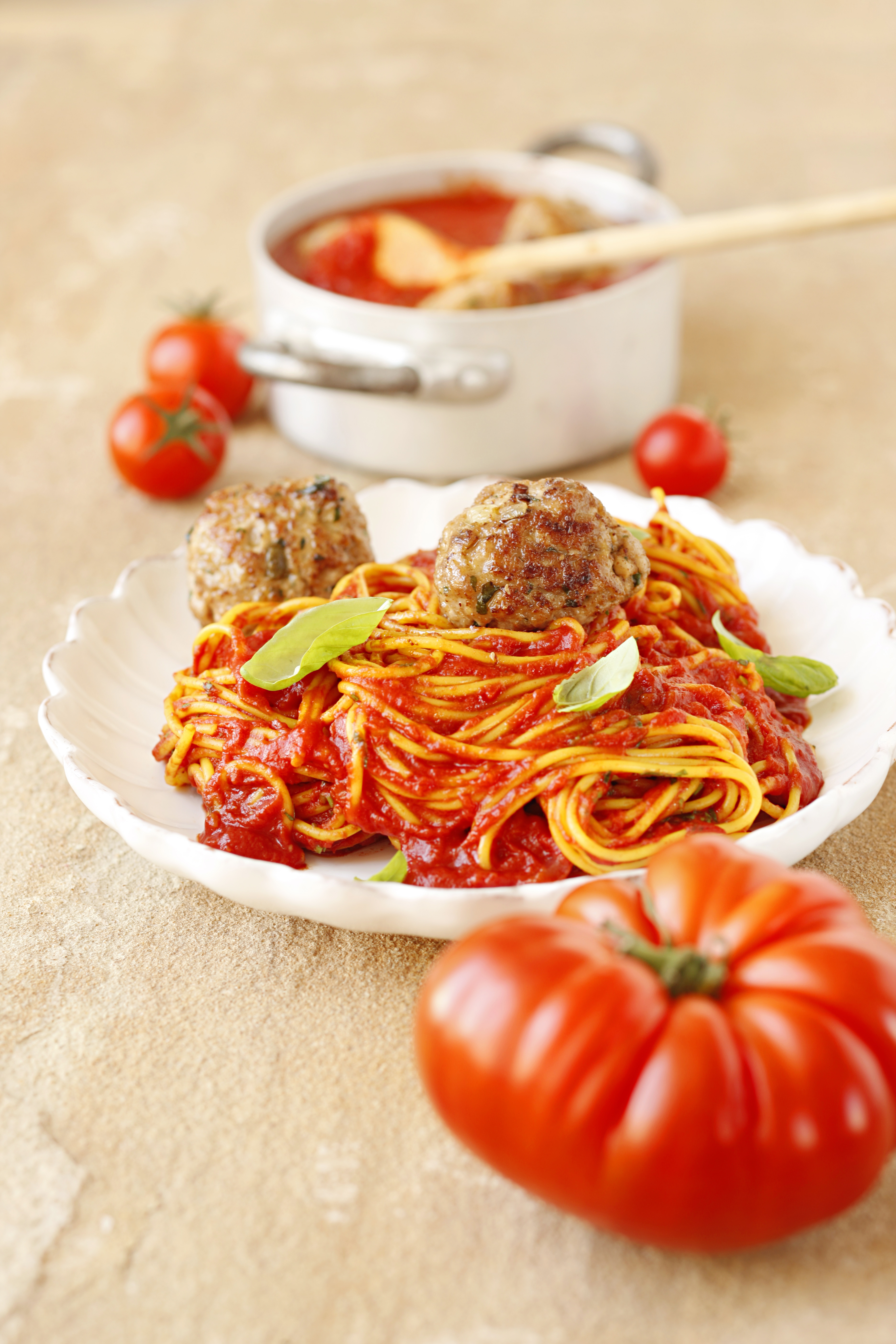 Das Gericht schmeckt auch ohne Spaghetti wunderbar. Dafür die Fleischbällchen für ca. 15 Minuten in der Paradeisersauce ziehen lassen. Mit Weißbrot servieren.Aus dem Heft: