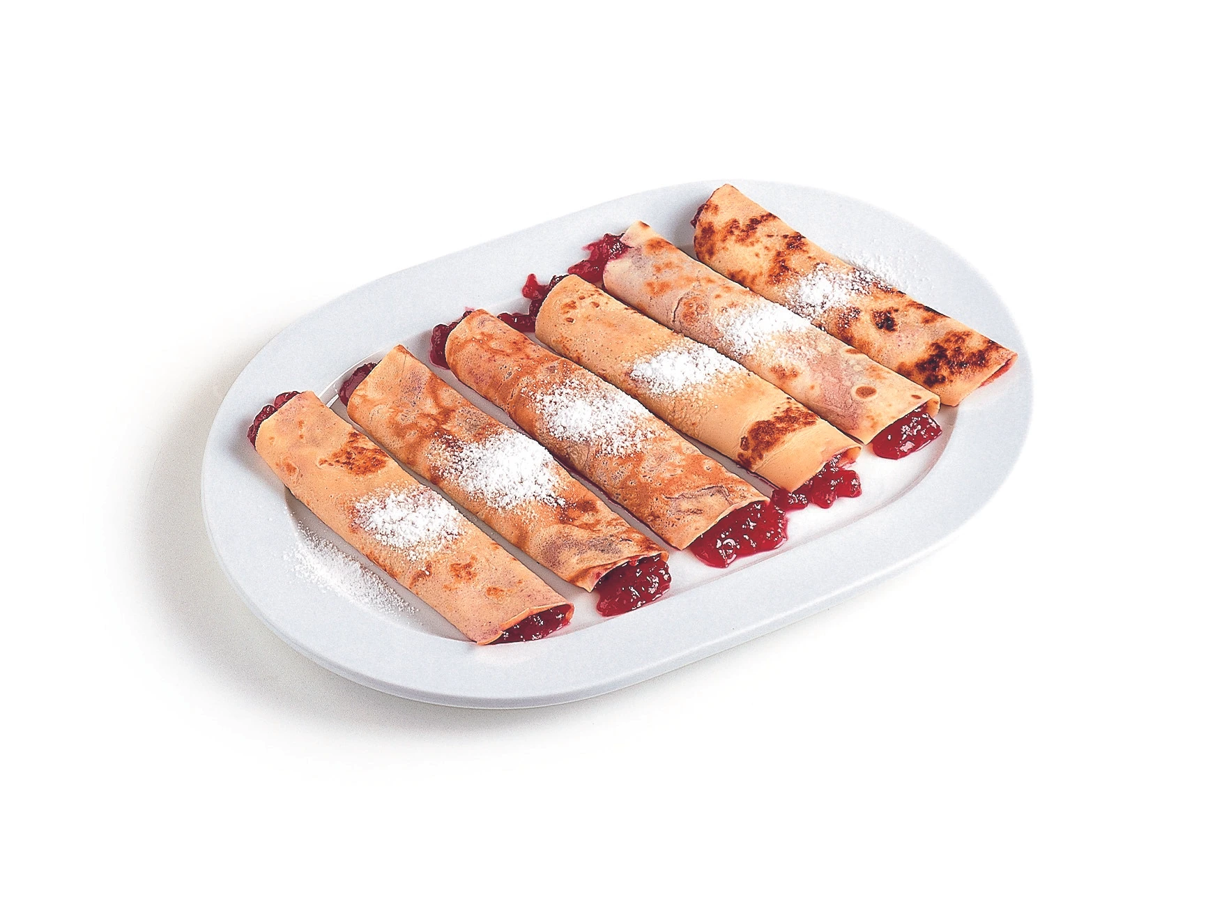 Palatschinken mit leicht erwärmtem Kompott bestreichen, einrollen und auf einer vorgewärmten Platte anrichten. Warme Vanillesauce dazu servieren.