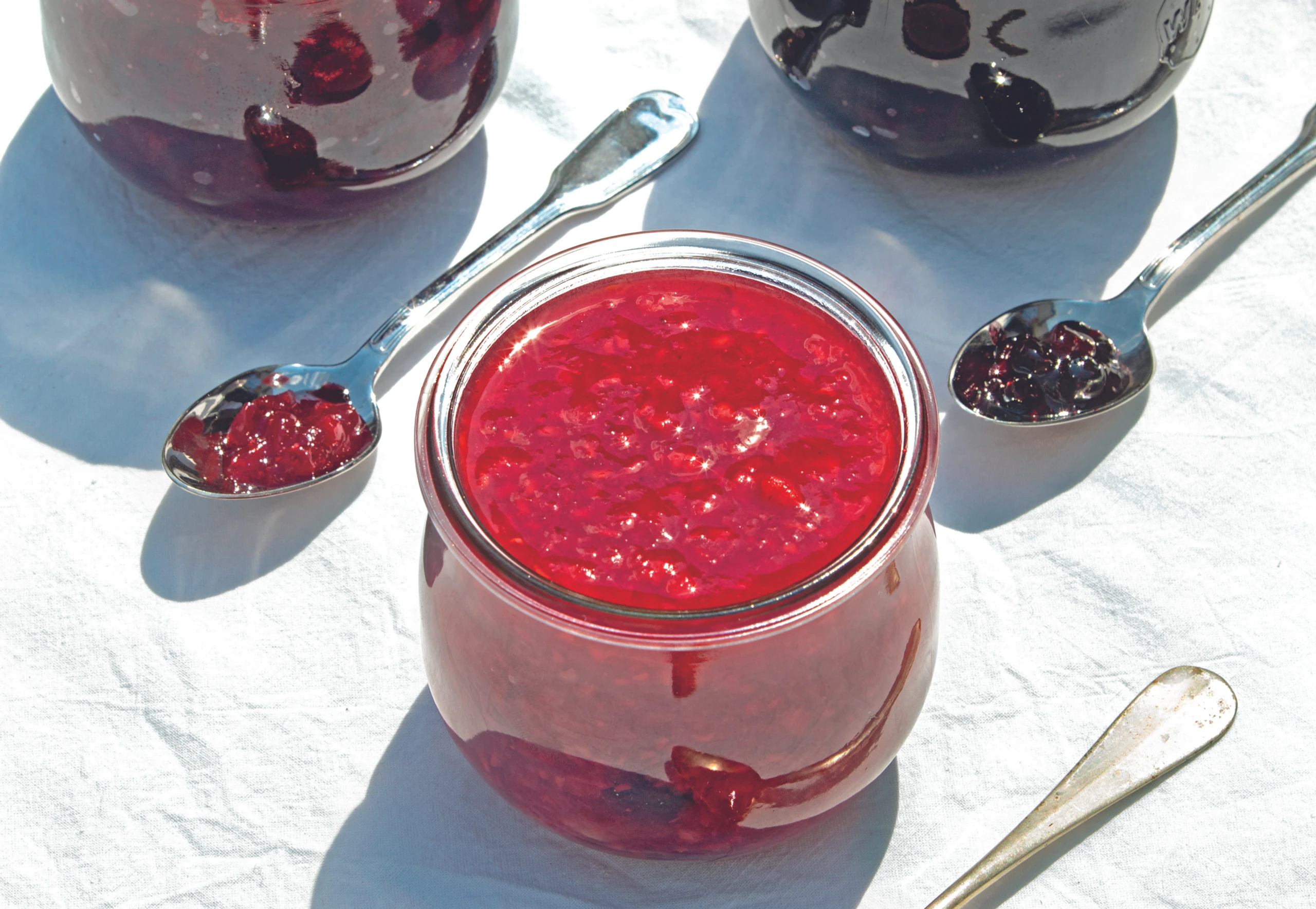 Beerenmischung in einem Topf langsam erhitzen und unter Rühren köcheln, bis die Preiselbeeren aufplatzen. Ca. 5 Minuten köcheln und den Schaum abschöpfen. Gelierprobe machen: einen Löffel der heißen Marmelade auf einen kalten Teller geben. Verläuft die Masse, ist sie noch zu flüssig und muss weitergekocht werden. Ist die Marmelade zu fest, löffelweise Wasser untermischen. Marmelade heiß in die Gläser füllen, verschließen und ca. 10 Minuten auf den Kopf stellen.