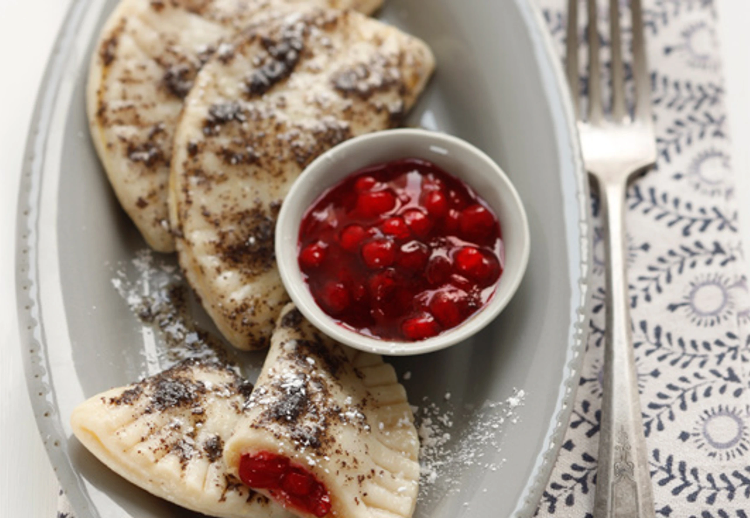 Salzwasser aufkochen, Preiselbeertaschen darin ca. 10 Minuten köcheln.