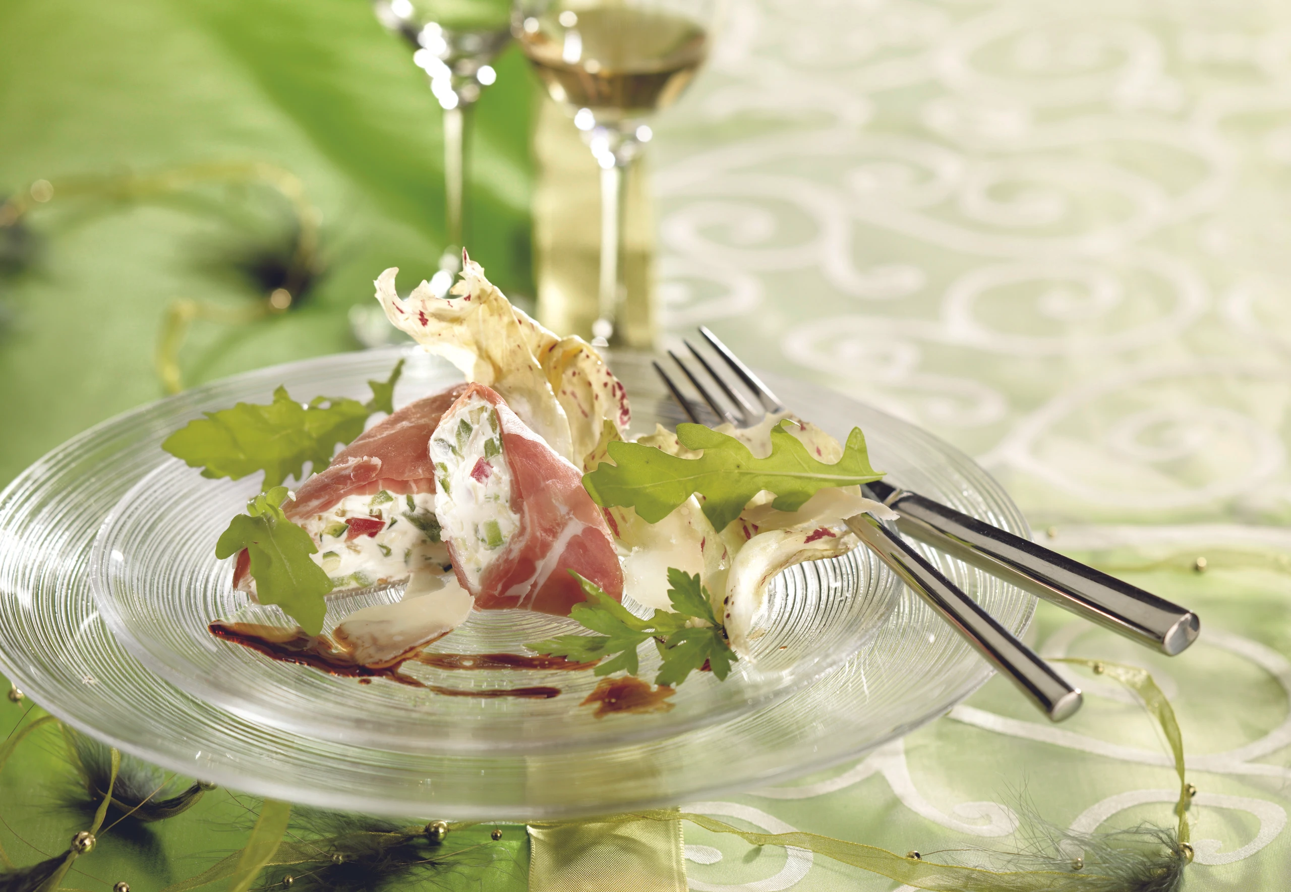 Prosciutto Röllchen mit Gemüse Salat