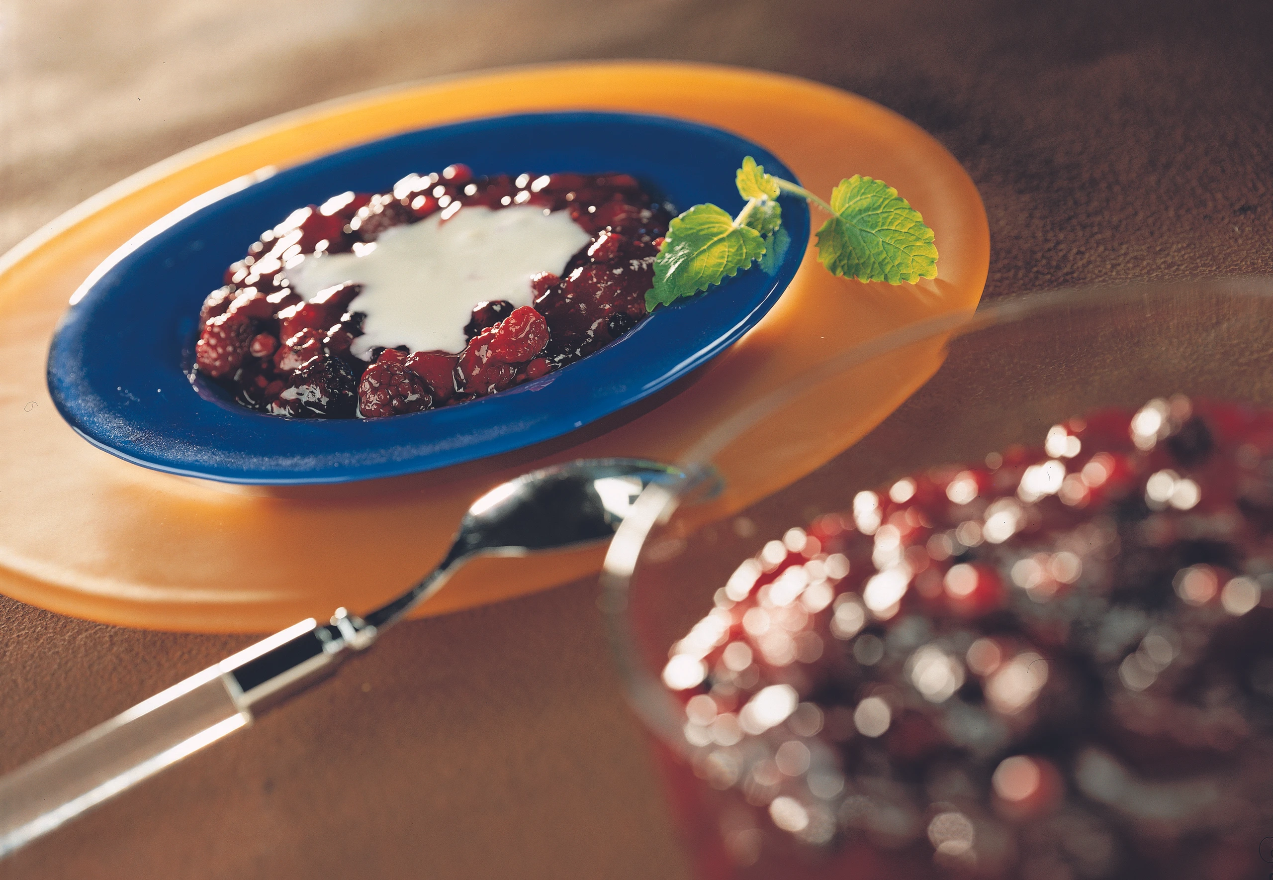 Die Beeren verlesen, eventuell kurz waschen und gut abtropfen lassen. Beeren in Schüsserln (Inhalt ca. 1/4 l) oder Suppentellern anrichten.