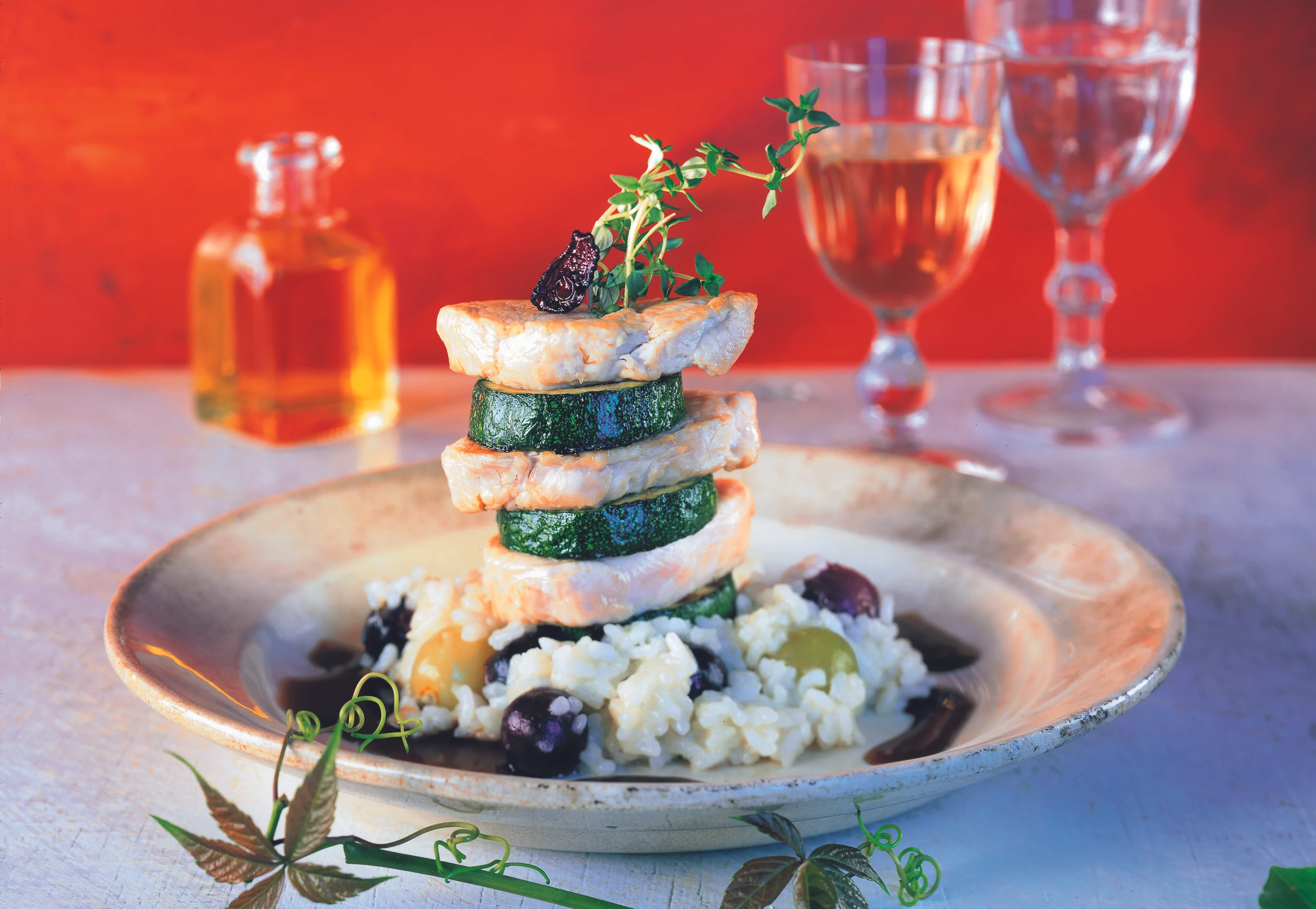 Puten-Zucchini-Türmchen mit Traubenrisotto