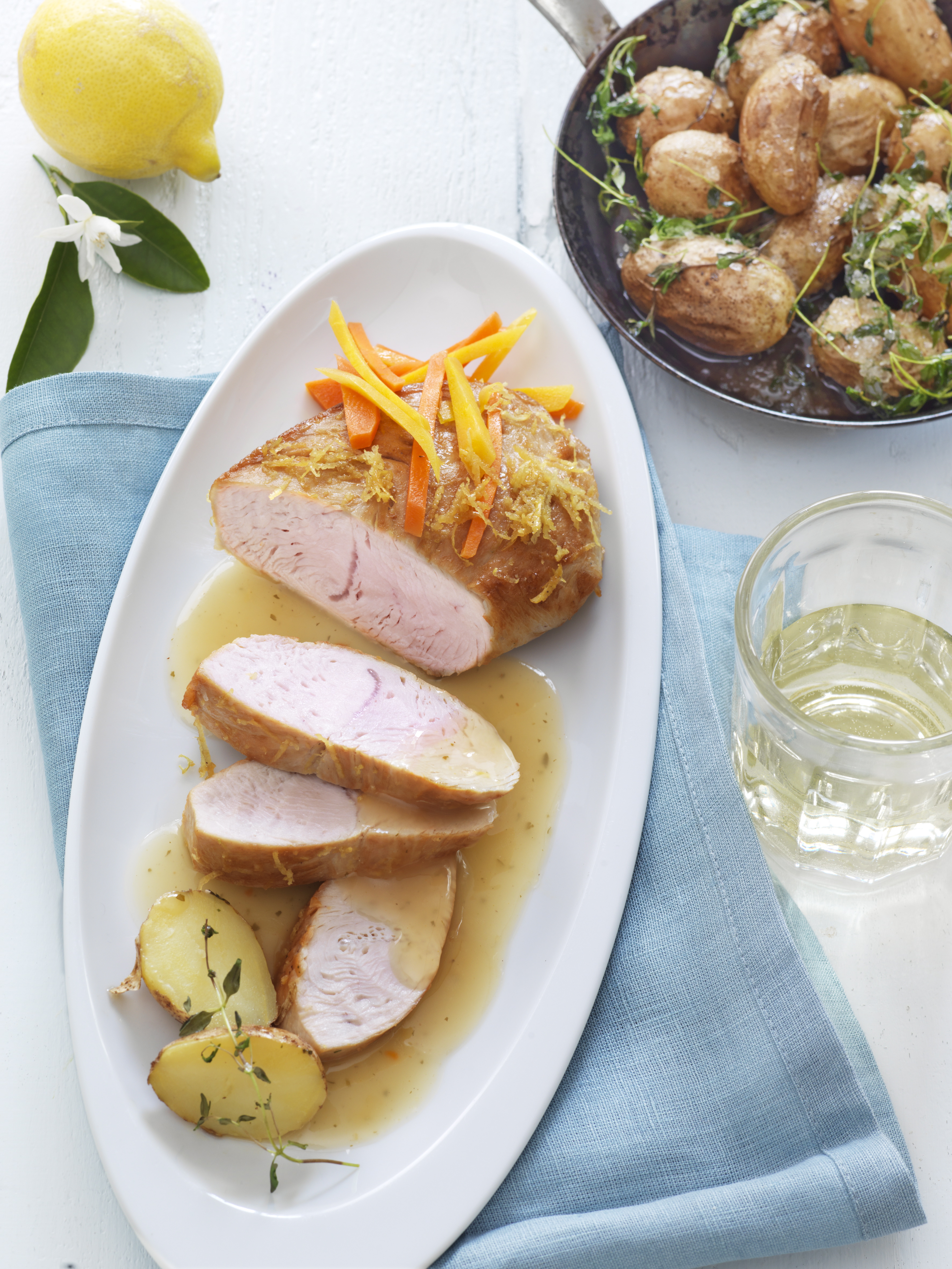 Putenfilet mit Zitronensauce und Thymian-Erdäpfeln