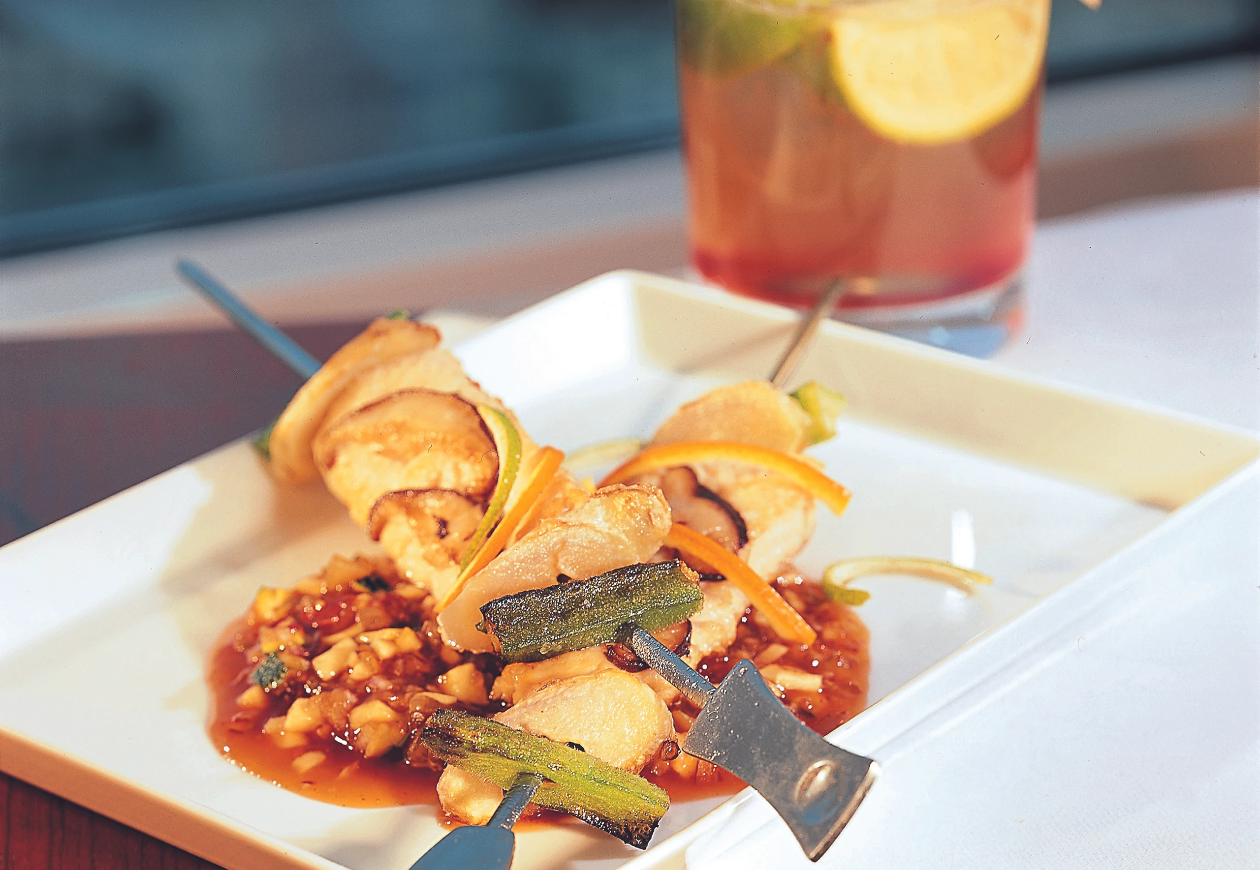 Putenspieße mit Okra