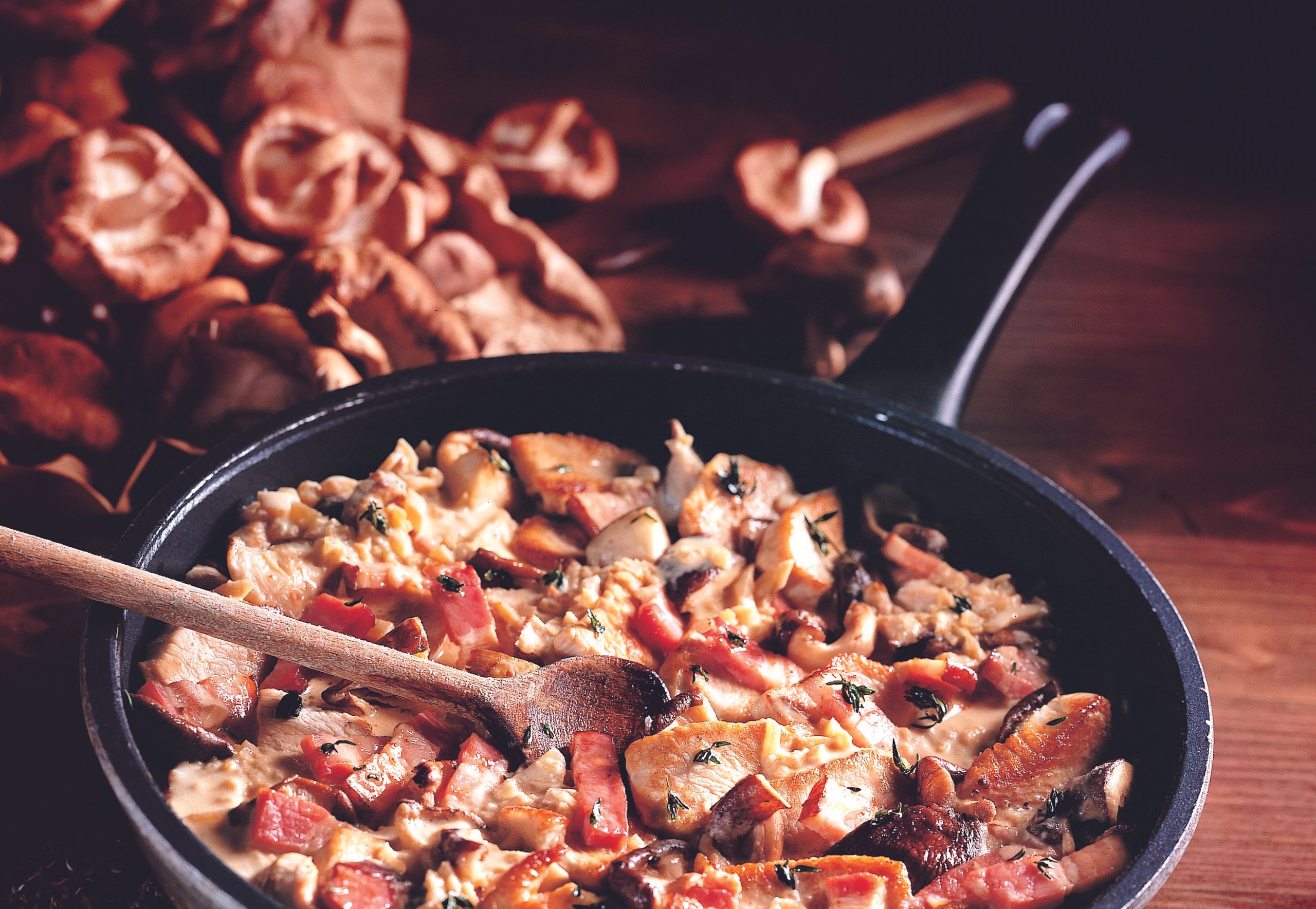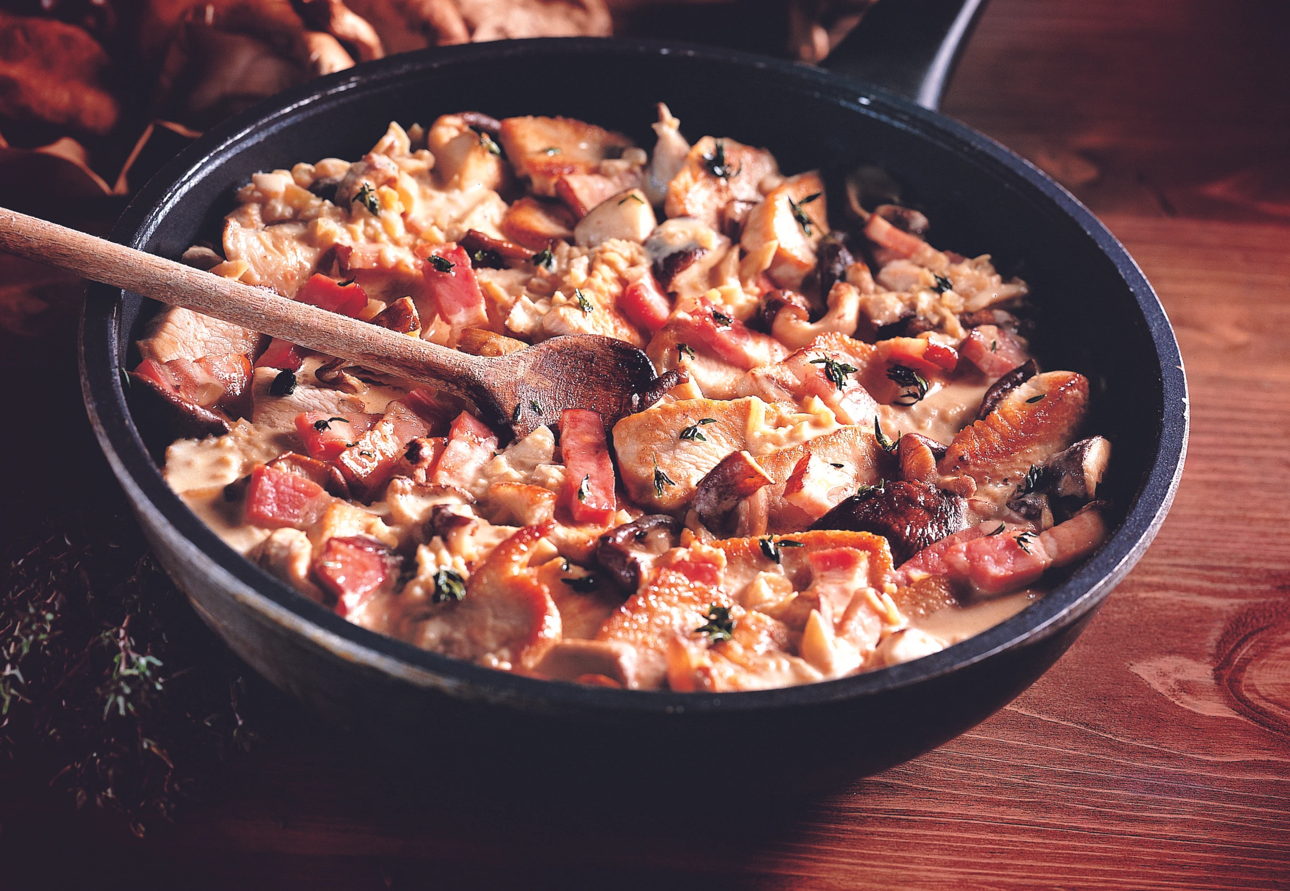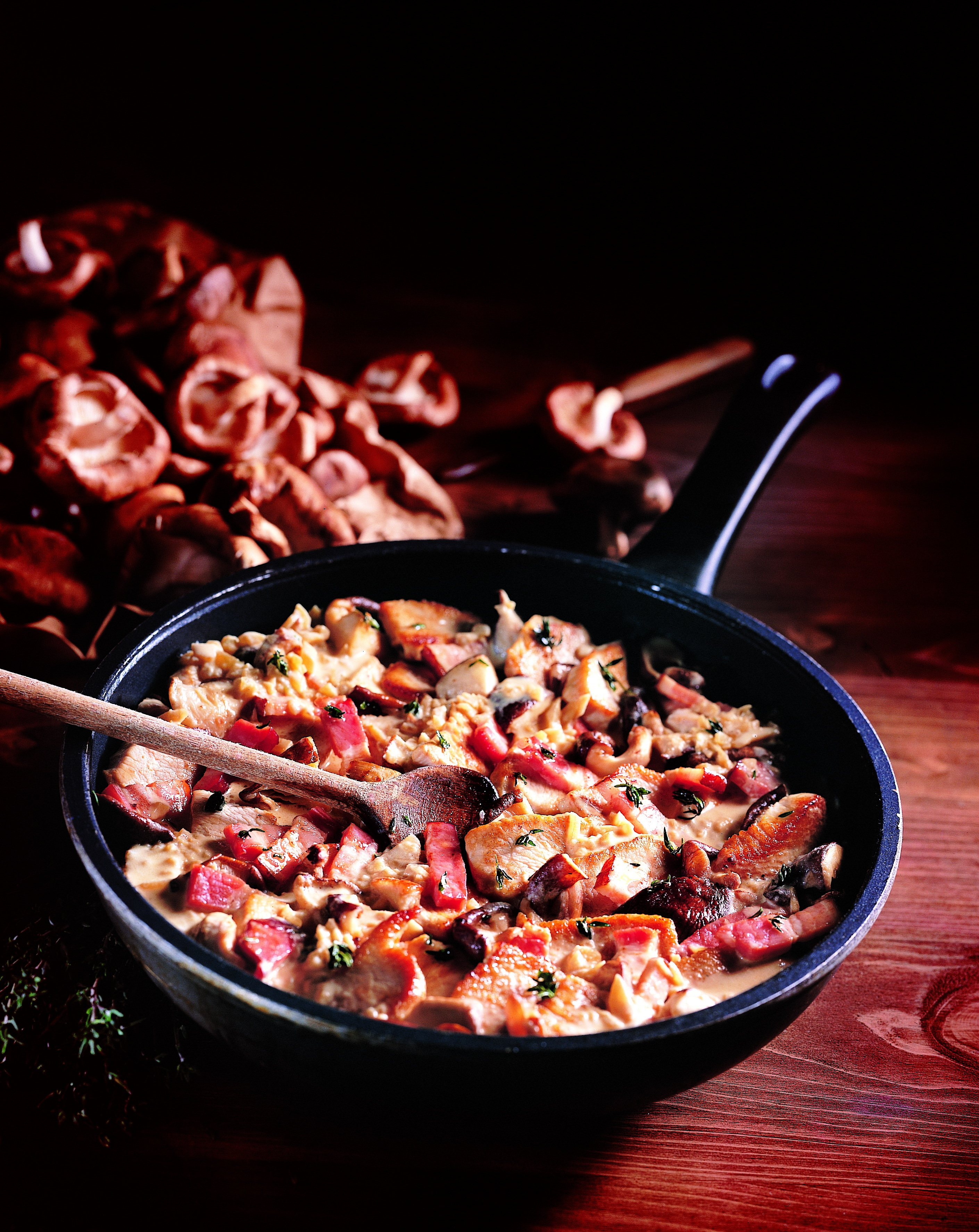 Putenstreifen mit Schwammerl-Speck-Sauce