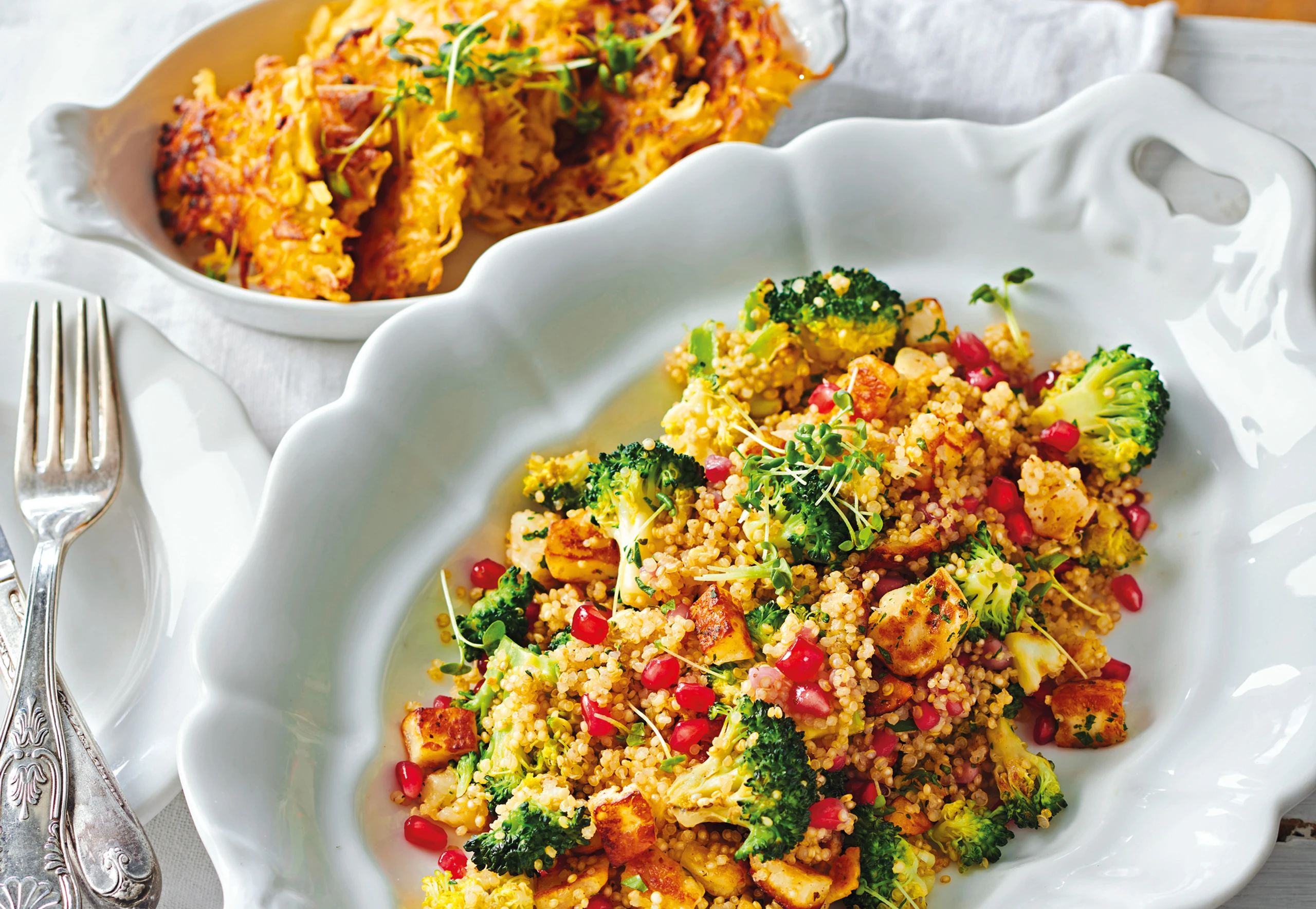 Quinoa mit Brokkoli und Pastinakenpuffern