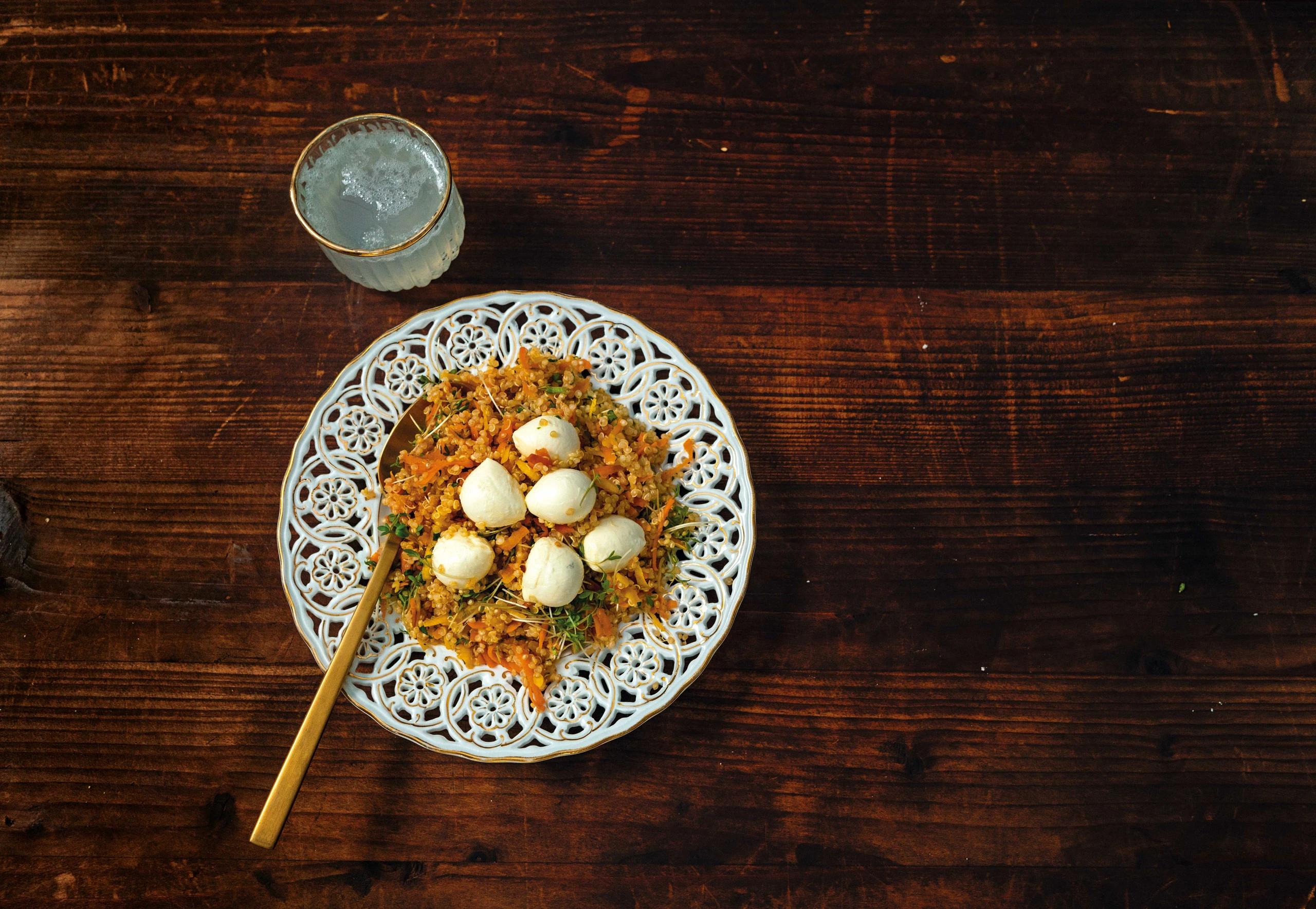 Quinoa mit Wurzelgemüse, Mozzarella und Gartenkresse