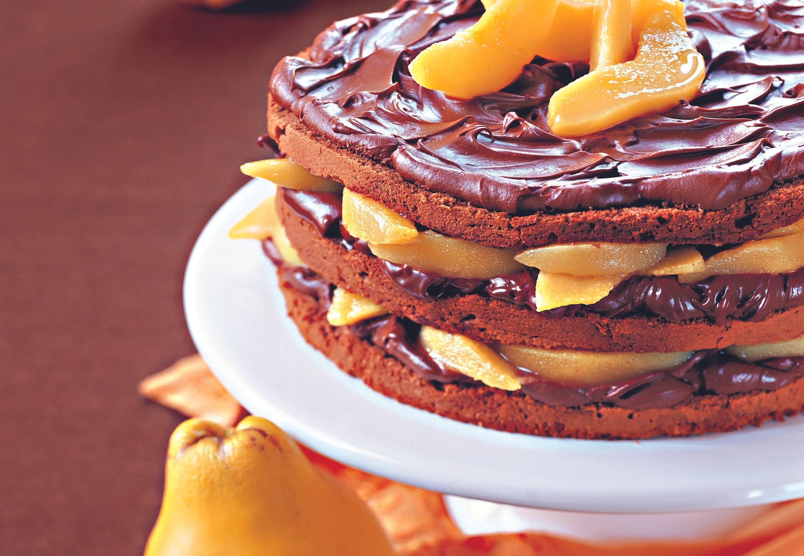 - Creme mit dem Schneebesen kurz aufrühren (1–2 Stunden vorher aus dem Kühlschrank nehmen). Tortenboden 2 Mal durchschneiden. Böden mit Schokocreme bestreichen und mit Quitten belegen. Böden übereinandersetzen und für ca. 1 Stunde kühl stellen.
