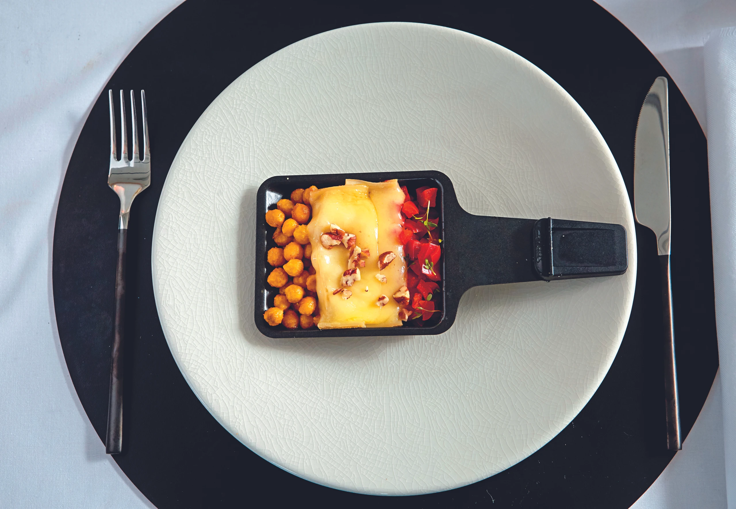 Raclette: Kichererbsen-Pfännchen mit Paprika und Nüssen