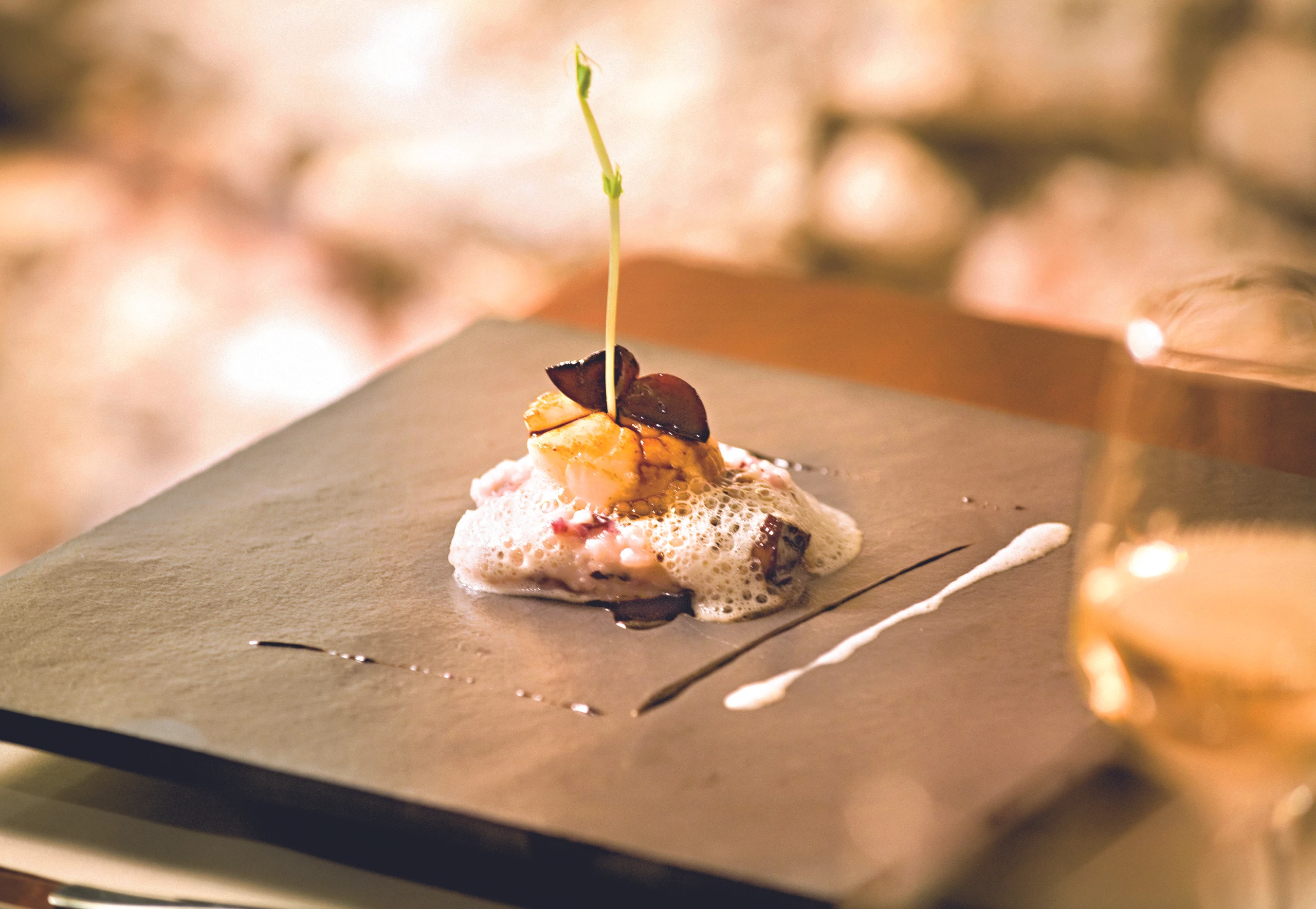 - Für den Balsamico Knoblauch halbieren. Zucker karamellisieren, Butter zugeben, aufschäumen und mit Balsamico ablöschen. Knoblauch einlegen und die Flüssigkeit um zwei Drittel einkochen