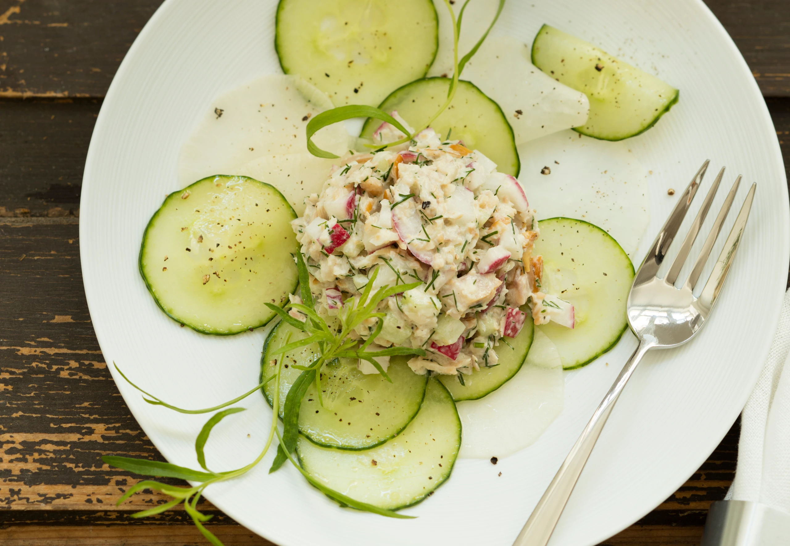 Räucherfischtatar mit Gurken-Rettich-Salat