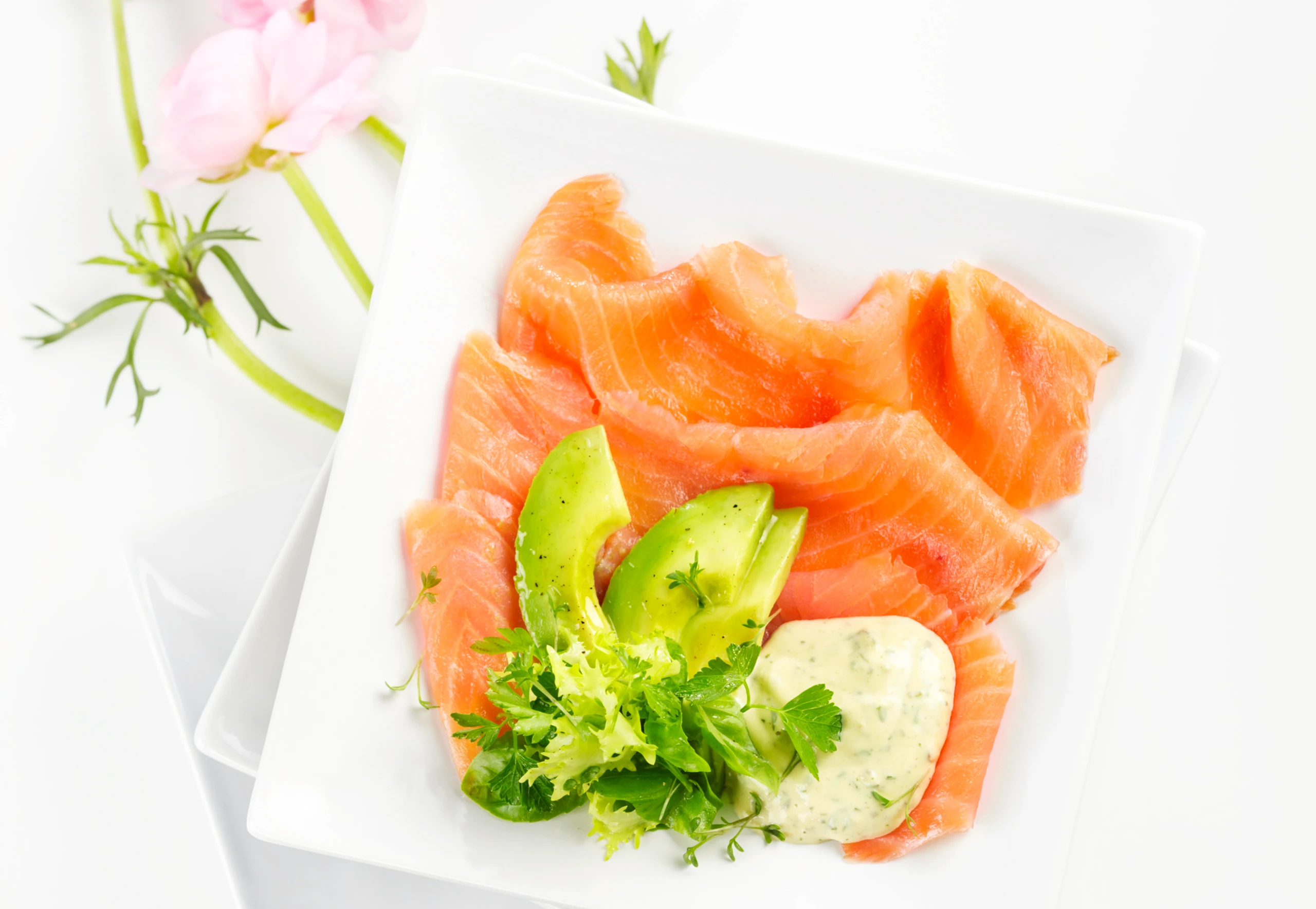 Räucherlachs-Carpaccio mit Avocado und Pfefferdip