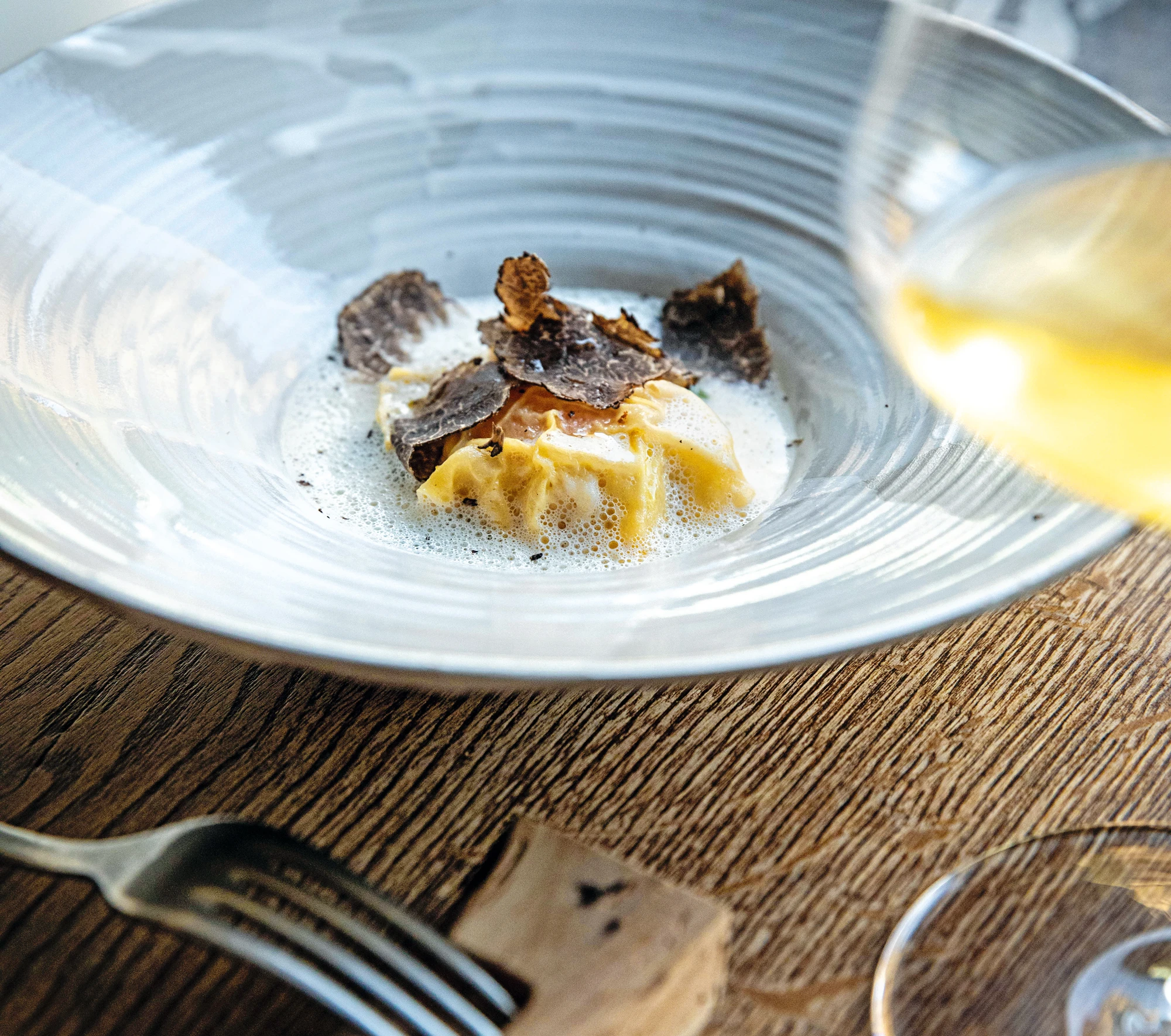 Raviolo mit Parmesanemulsion und schwarzem Trüffel