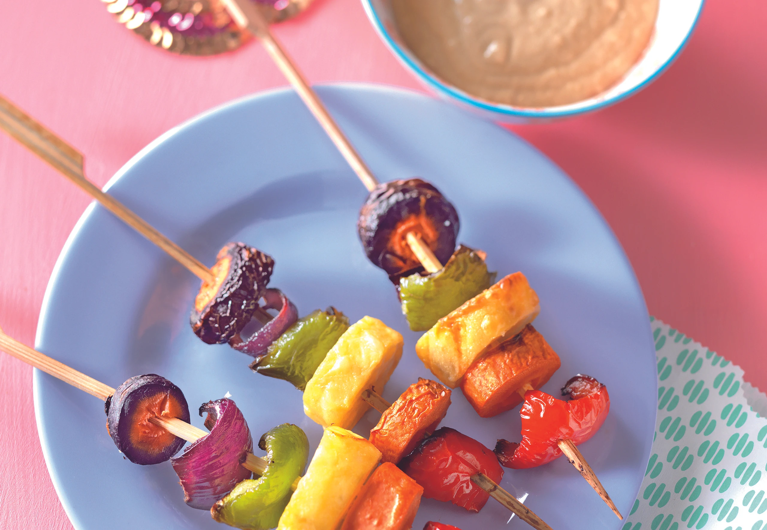 Gemüse mit Öl vermischen, auf Schaschlik-Spieße stecken. Spieße auf ein Backblech legen und im Rohr (mittlere Schiene) ca. 40 Minuten braten. Mit Fleur de Sel bestreuen.