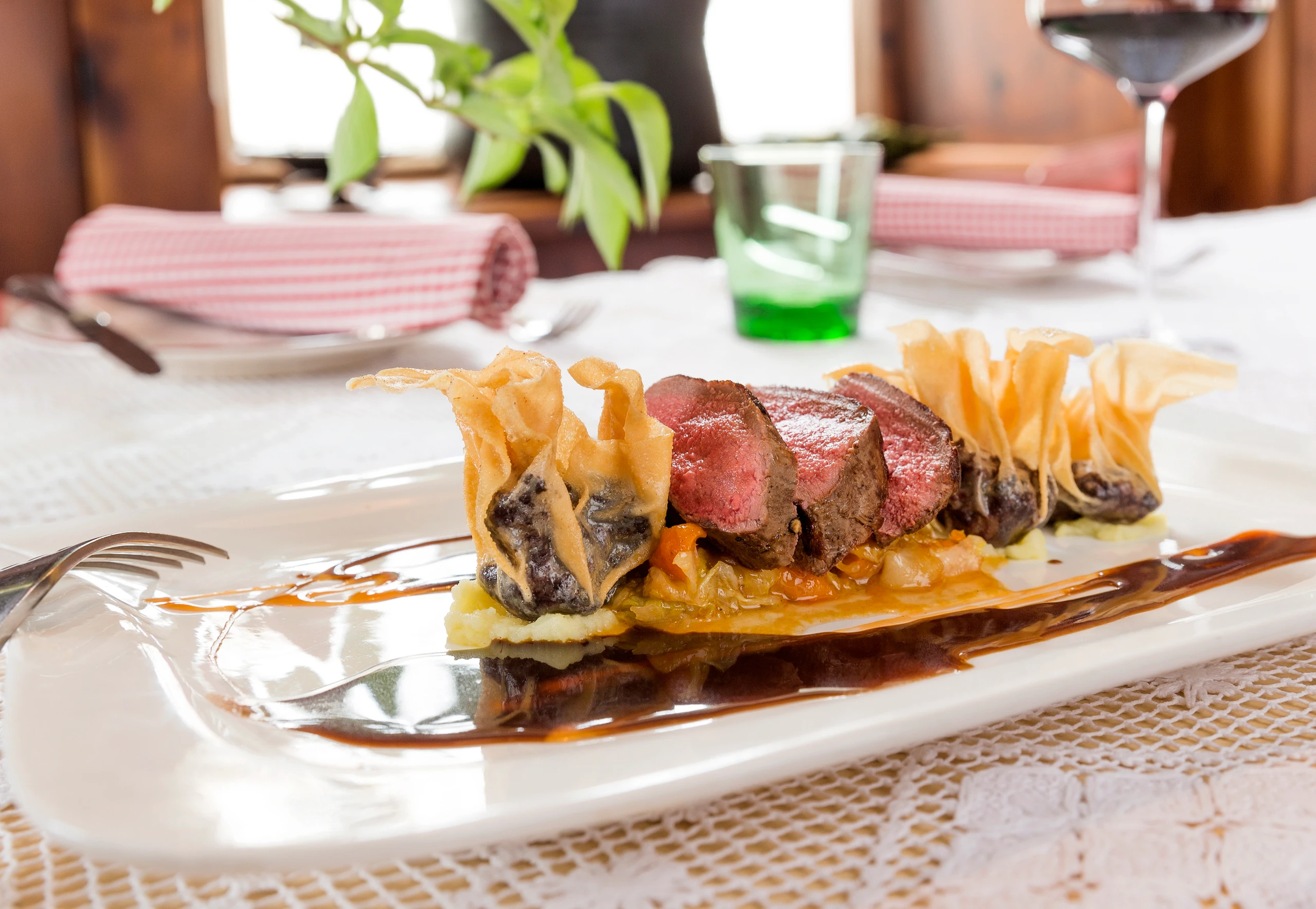 Filets salzen, pfeffern und in 3 EL Öl braten. Fleisch kurz rasten lassen, aufschneiden, mit Kraut, Sauce und Sackerln anrichten.