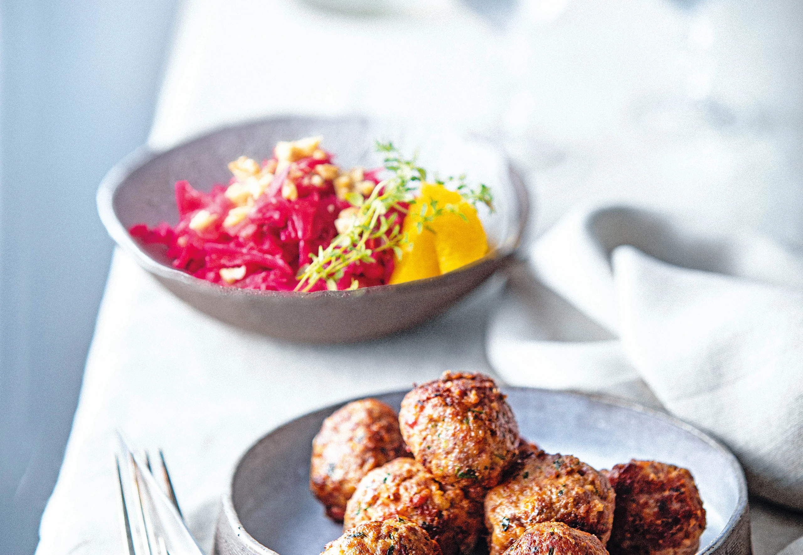 Reh-Salsicciabällchen mit Rotkrautsalat