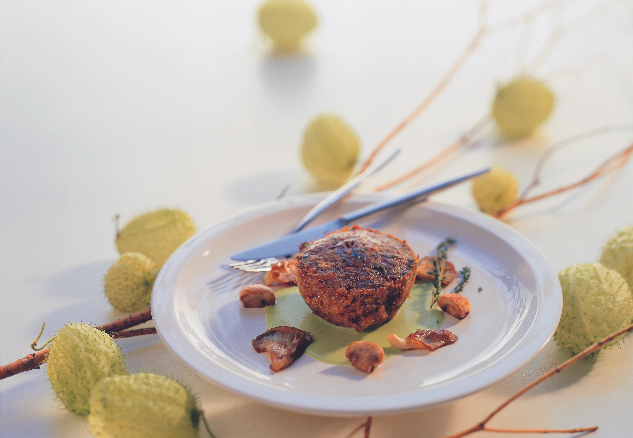 - Rehfleisch in ca. 1/2 cm große Stücke schneiden. Zuerst die Brotmischung, dann das Rehfleisch faschieren oder in einem elektrischen Zerkleinerer fein pürieren. Fleischmischung, Pilzmasse, Ei, Salz und Pfeffer verrühren.
