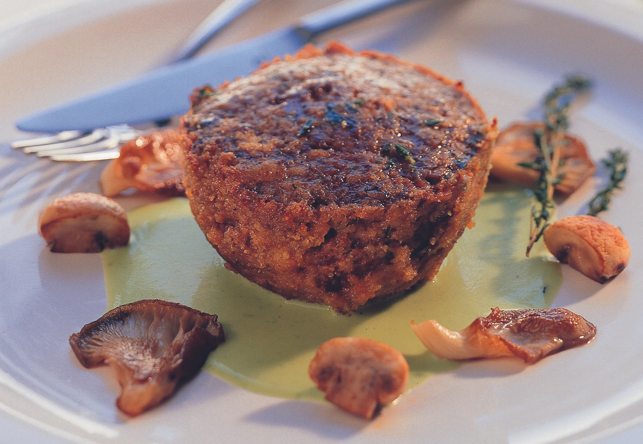 - Aufläufe auf Teller stürzen und mit den gebratenen Schwammerln und der Sauce (siehe Rezept) servieren.