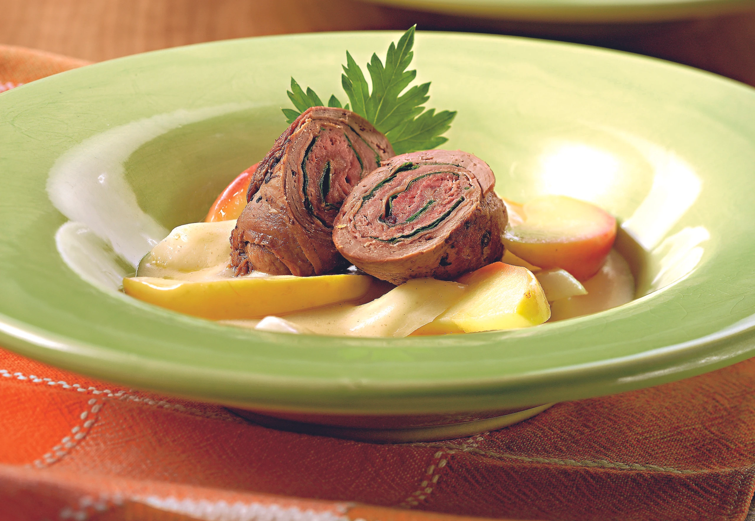 In der Pfanne wenig Öl erhitzen, Röllchen darin rundum ca. 5 Minuten braten. Röllchen mit den Rüben anrichten.