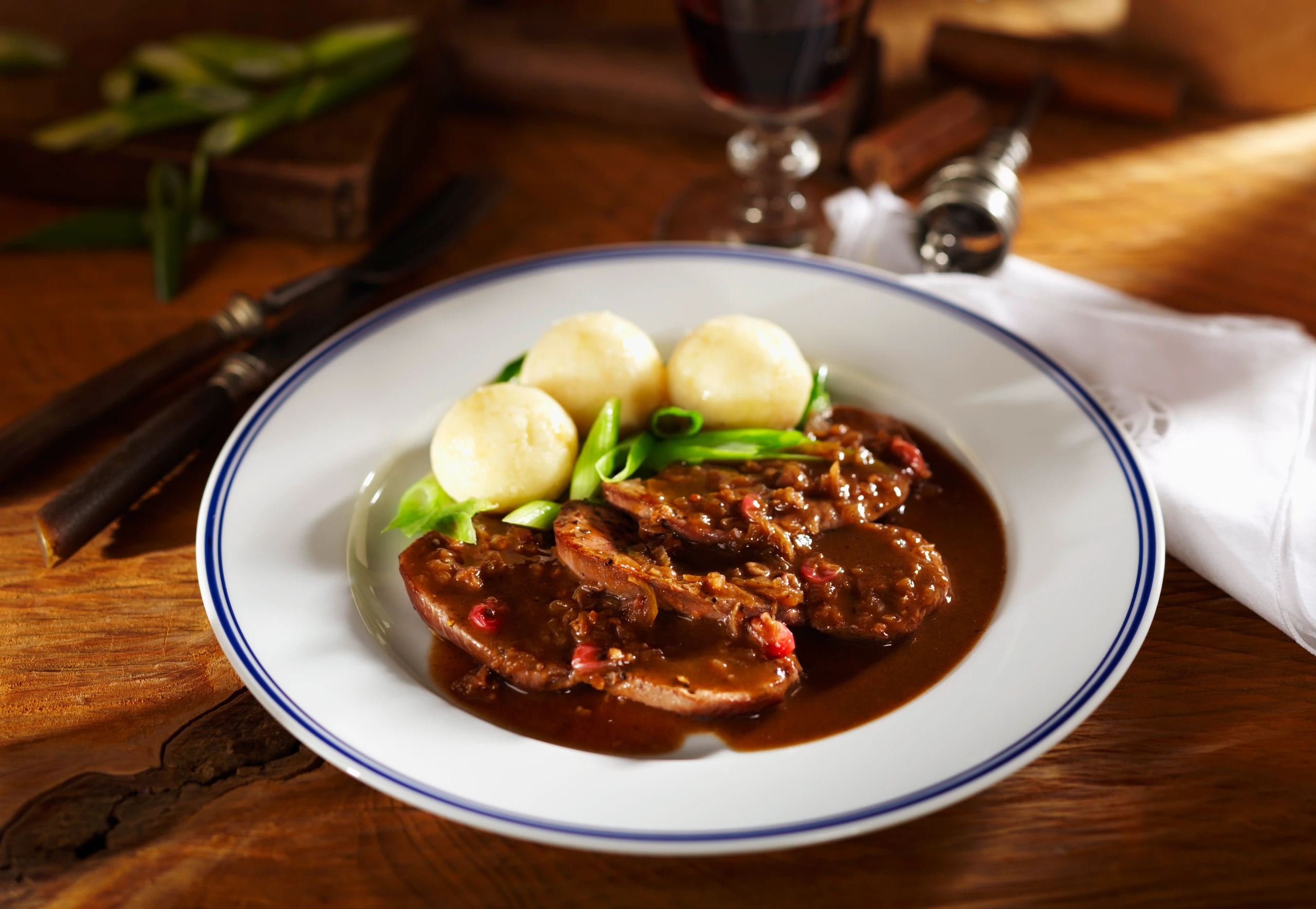 Rehschnitzel mit Hagebuttensauce und Grießknöderln