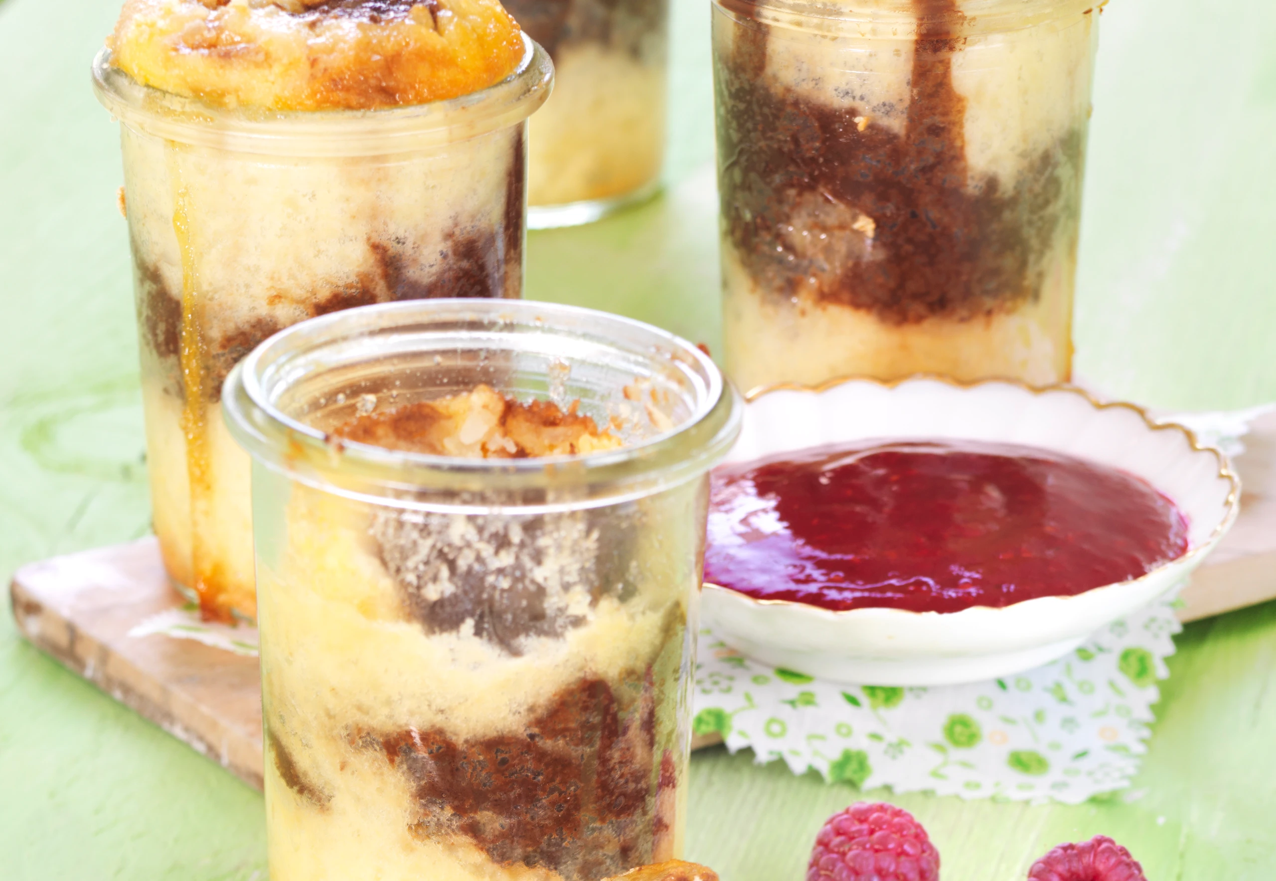 - Aufläufe aus dem Rohr nehmen und mit der Himbeersauce servieren.