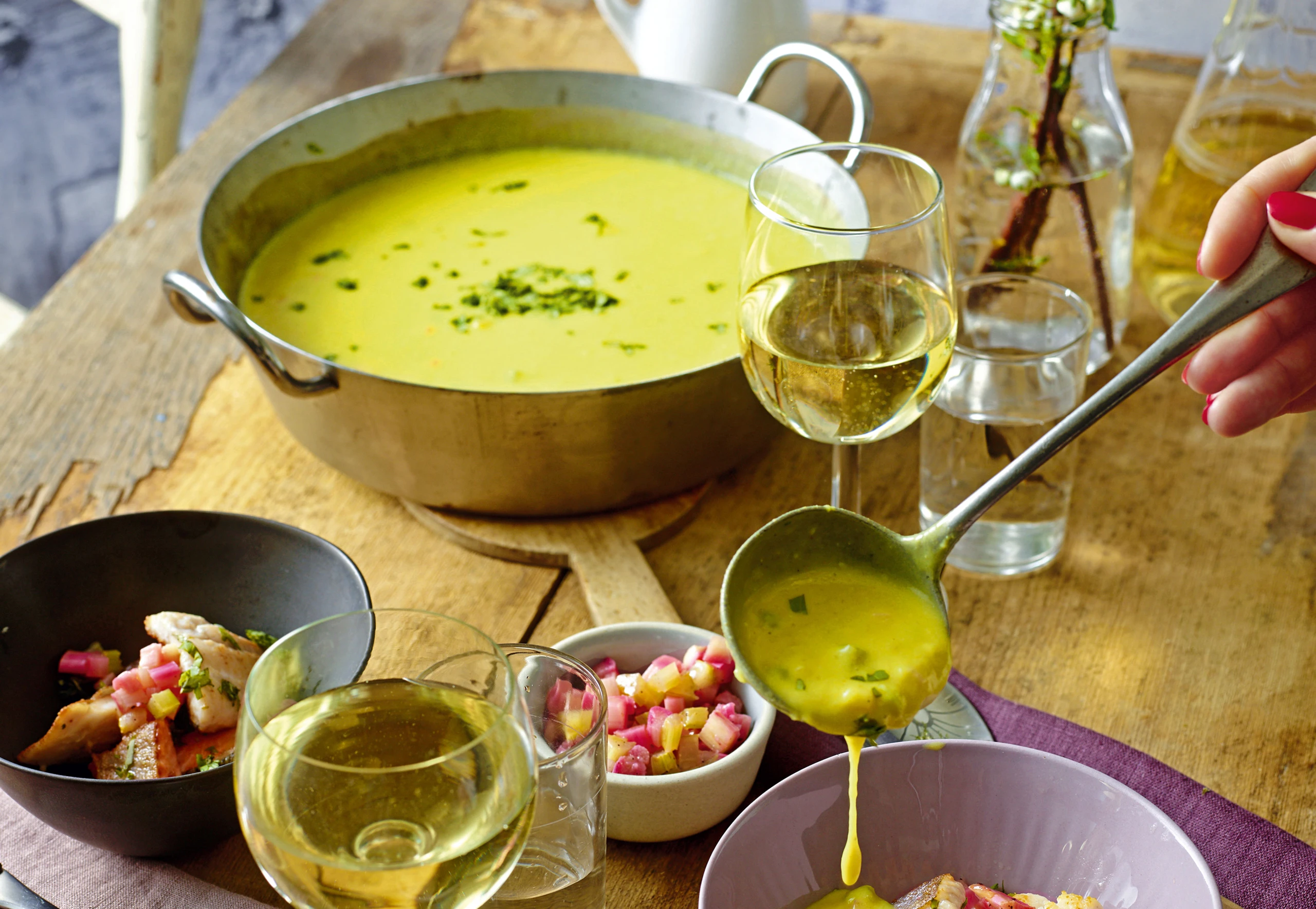 Rhabarber-Curry-Fischsuppe mit Kokos und Koriander