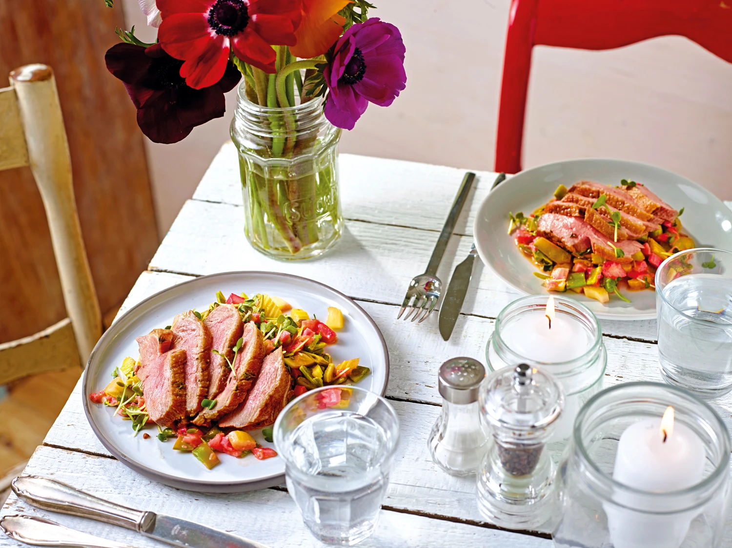 | 2 Stk. | Entenbrust (je ca. 350 g, mit Haut) |