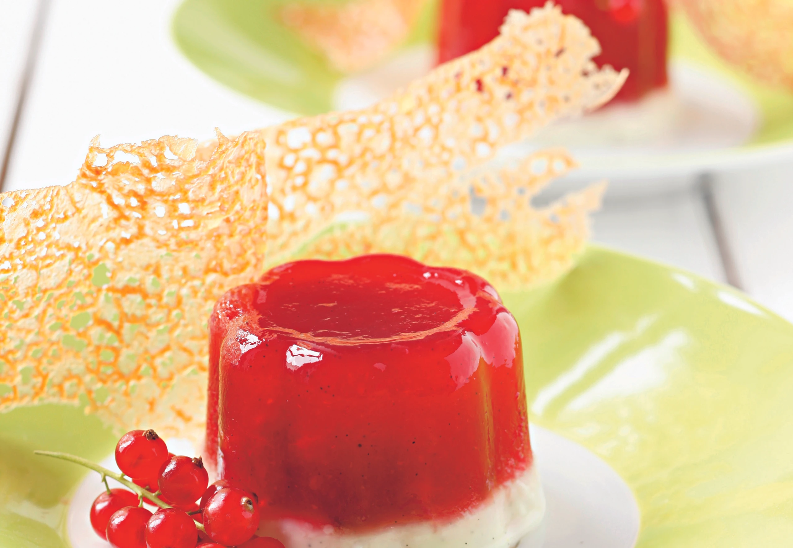 Ribisel-Vanille-Pudding mit Ingwerblättern