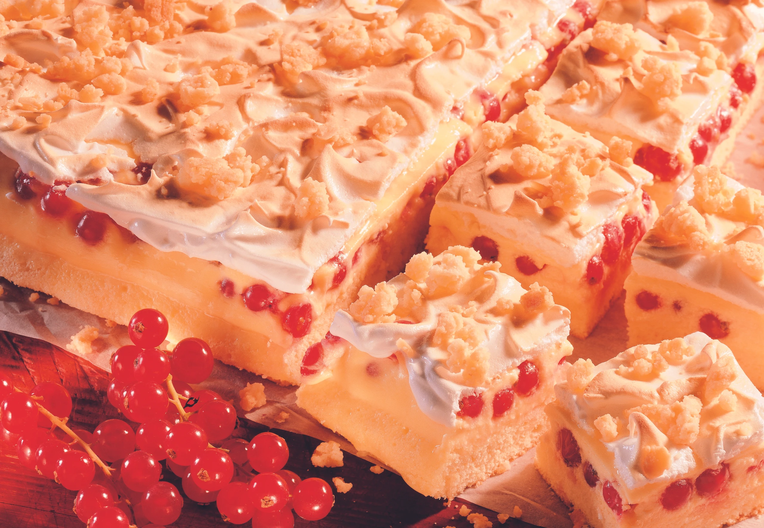 Ribiselschaumschnitte mit knusprigen Streuseln