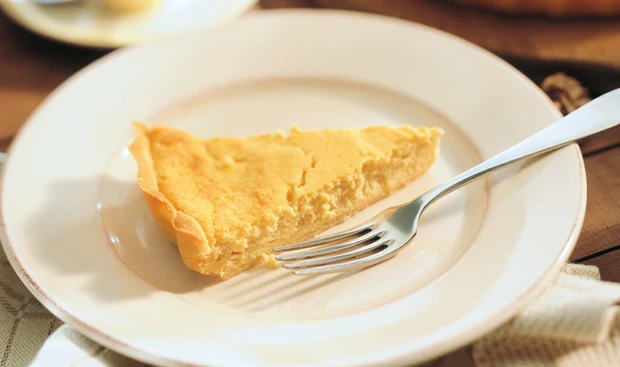 - Teig ausrollen, eine Tarteform (Ø 26 cm) damit auslegen und kühl stellen. Rohr auf 200°C vorheizen.