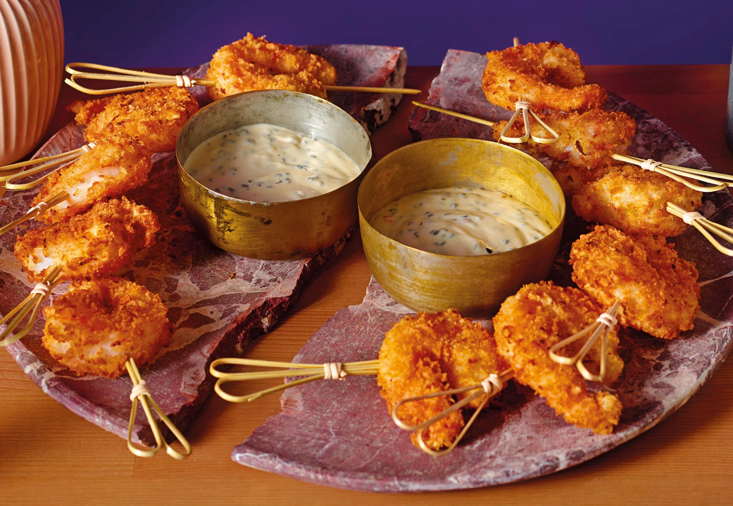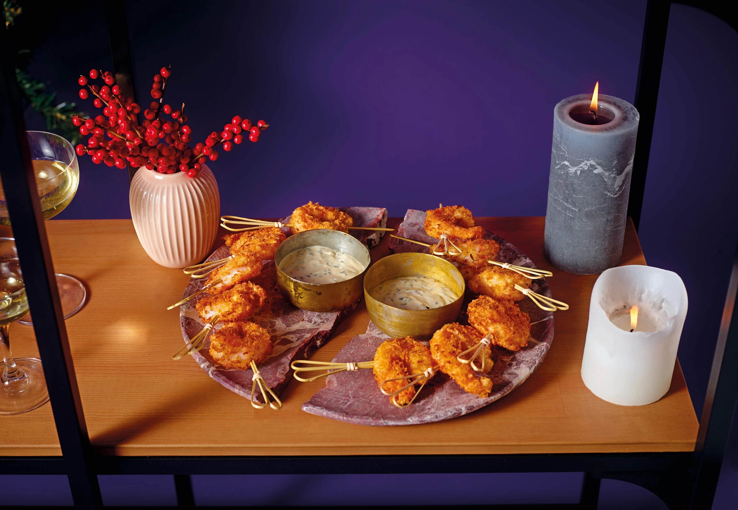 Riesengarnelen mit Pankokruste und Chili-Miso-Mayo