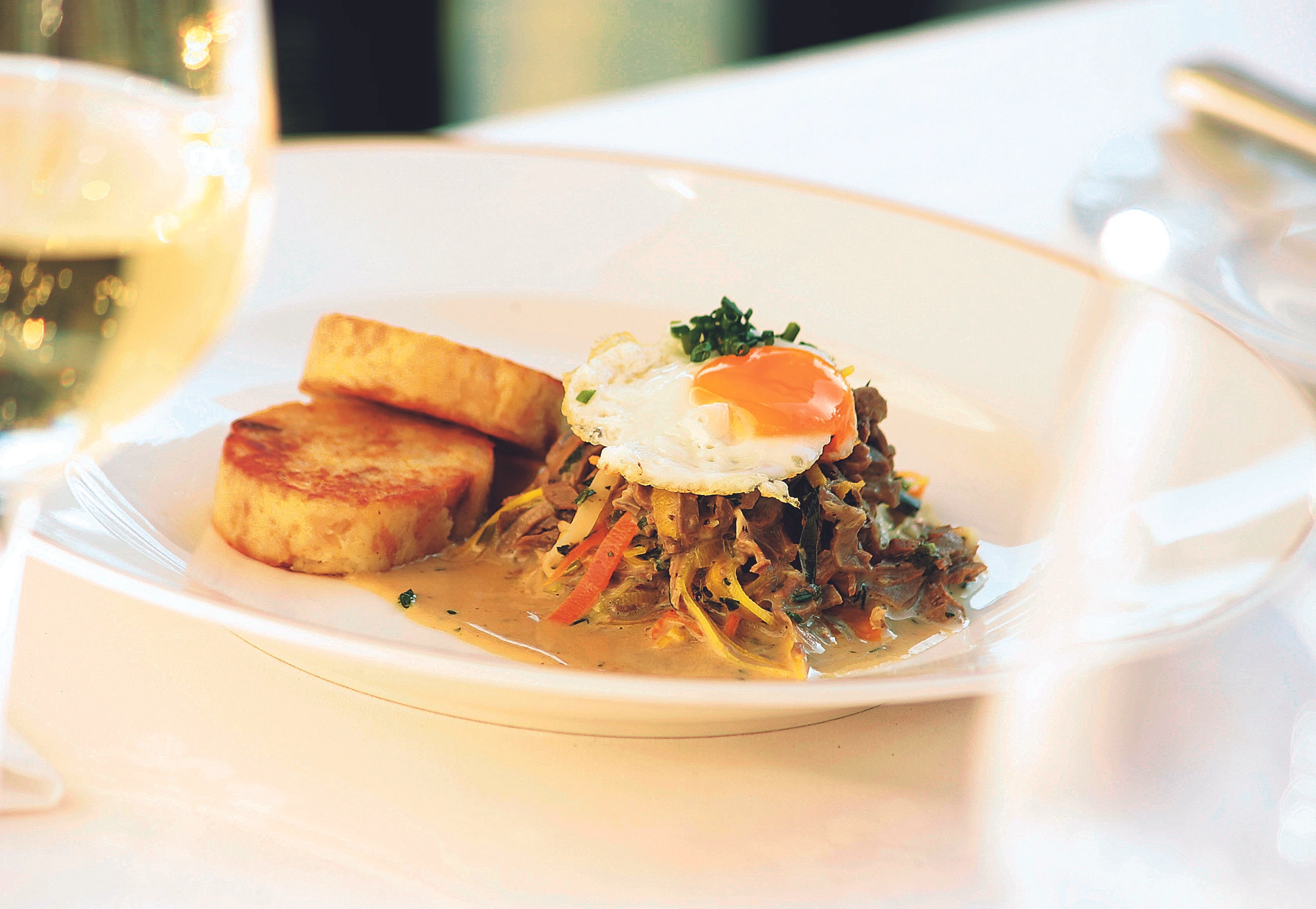 In einem weiten Topf Butter erhitzen, Zwiebel anschwitzen, mit Riesling ablöschen und auf ein Viertel der ursprünglichen Menge einkochen. Beuschelsud abseihen, zugießen und wieder auf ein Viertel einreduzieren. Obers zugießen, Gemüse, Beuschel und Herz zugeben und einkochen. Mit Salz, Pfeffer und zerdrücktem Knoblauch würzen. Petersilie, etwas Zitronensaft und 1 Spritzer Essig einrühren, aufkochen. Eventuell mit geschlagenem Obers verfeinern und mit Serviettenknödel oder Gebäck servieren.