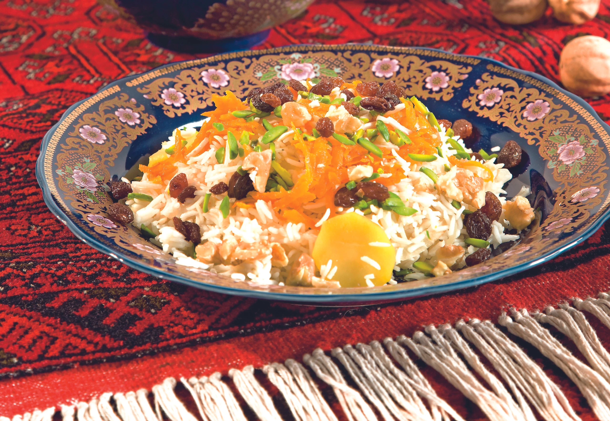 - Karotten im restlichen Öl rösten. Reis in eine Schüssel füllen, mit Karotten, Nüssen und Rosinen bestreuen.