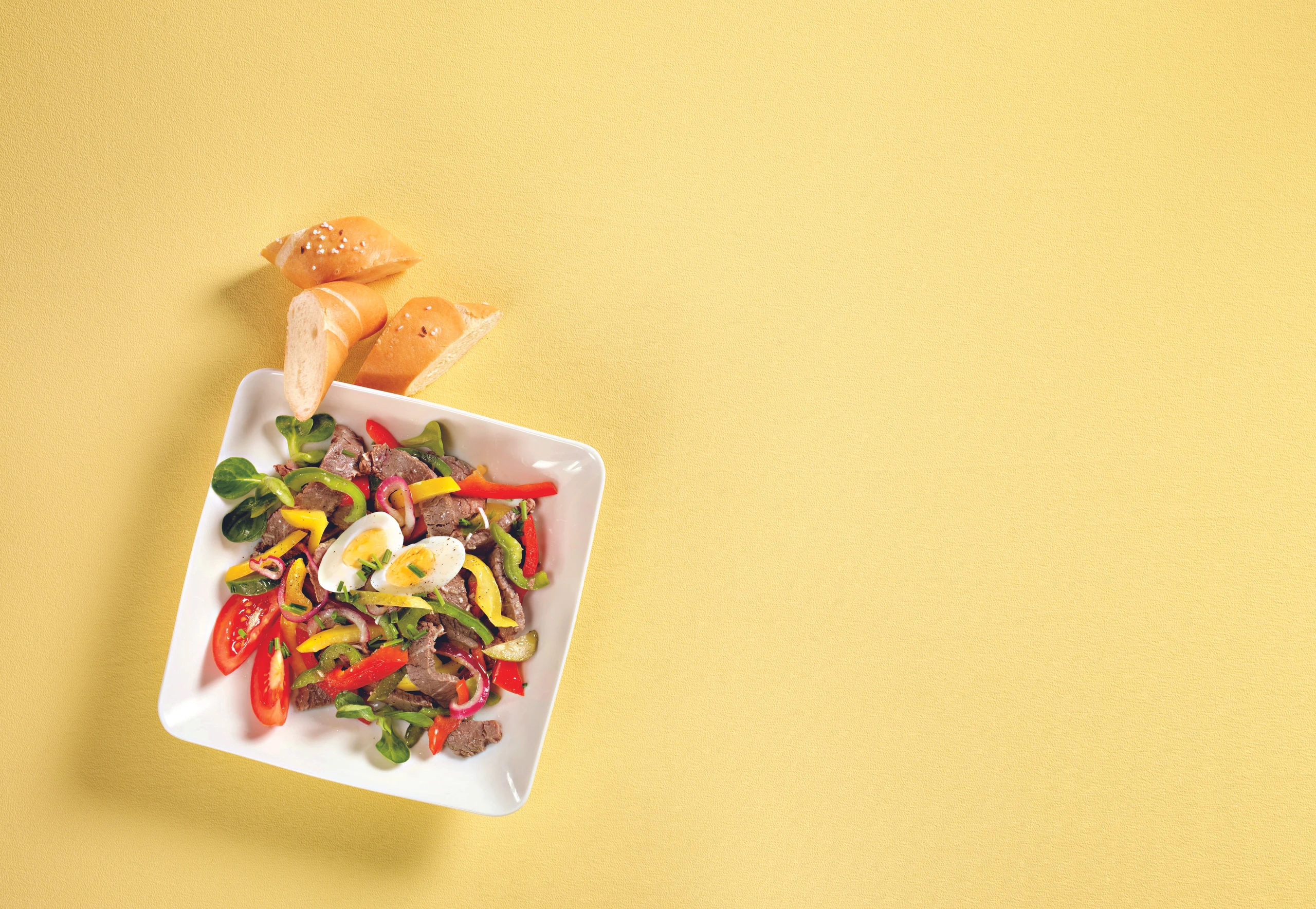Vogerlsalat putzen, waschen und abtropfen lassen. Eier schälen. Eier und Paradeiser in Spalten, Schnittlauch fein schneiden. Rindfleischsalat auf Tellern anrichten, mit Vogerlsalat, Eiern und Paradeisern garnieren und mit Schnittlauch bestreut servieren. Dazu passen Wachauer Weckerln oder Salzstangerln.