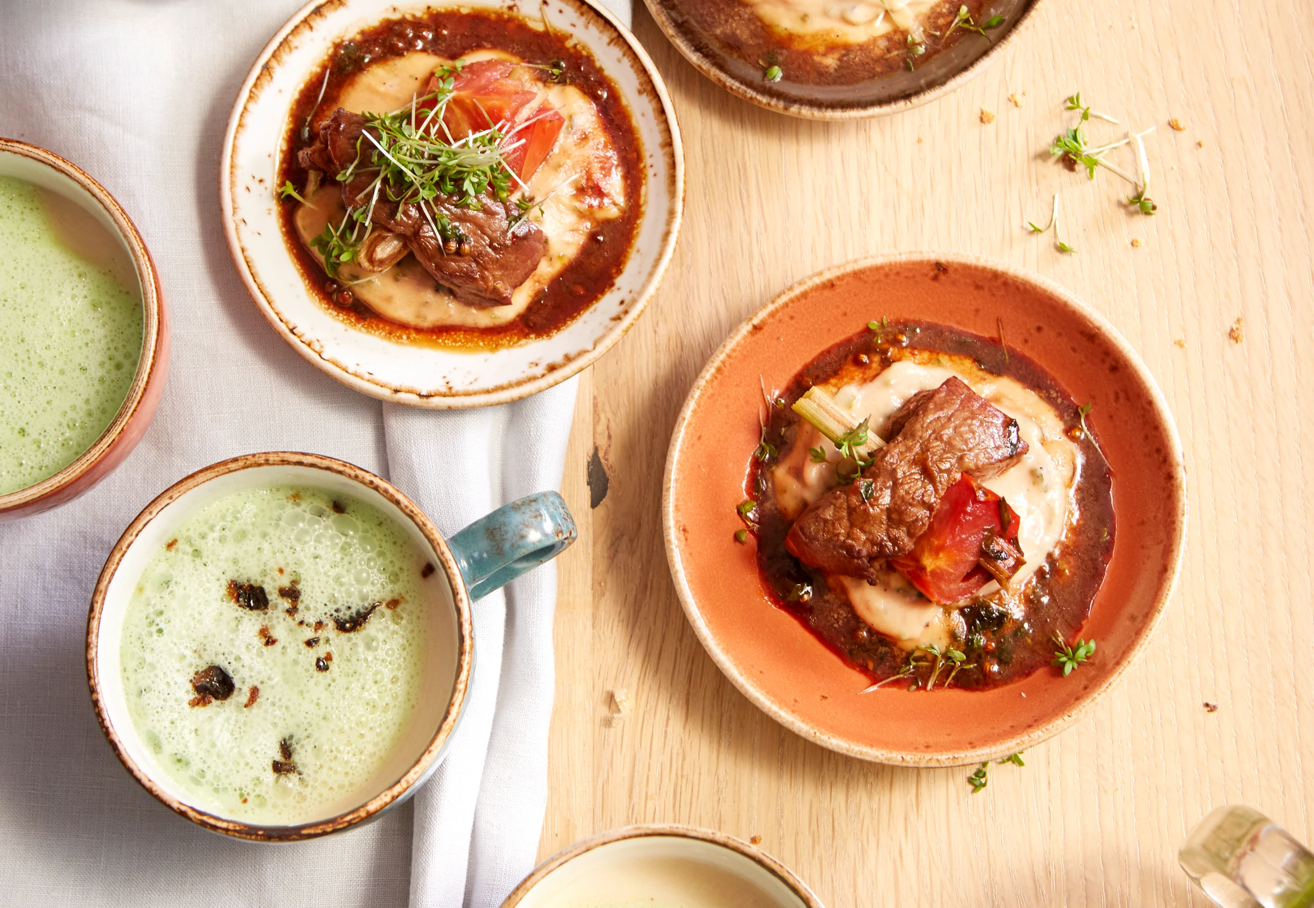 Von der Beiried Fettschicht wegschneiden, Fleisch quer in knapp 1 cm dicke Streifen schneiden. Für die Marinade Zwiebeln putzen, Knoblauch und Ingwer schälen. Zwiebeln, Knoblauch und Ingwer klein hacken, mit den übrigen Marinade-Zutaten vermischen. Marinade und Fleisch in ein Plastiksackerl geben, gut vermischen. Sackerl verschließen, Fleisch mindestens 2 Stunden (am besten über Nacht) im Kühlschrank ziehen lassen.