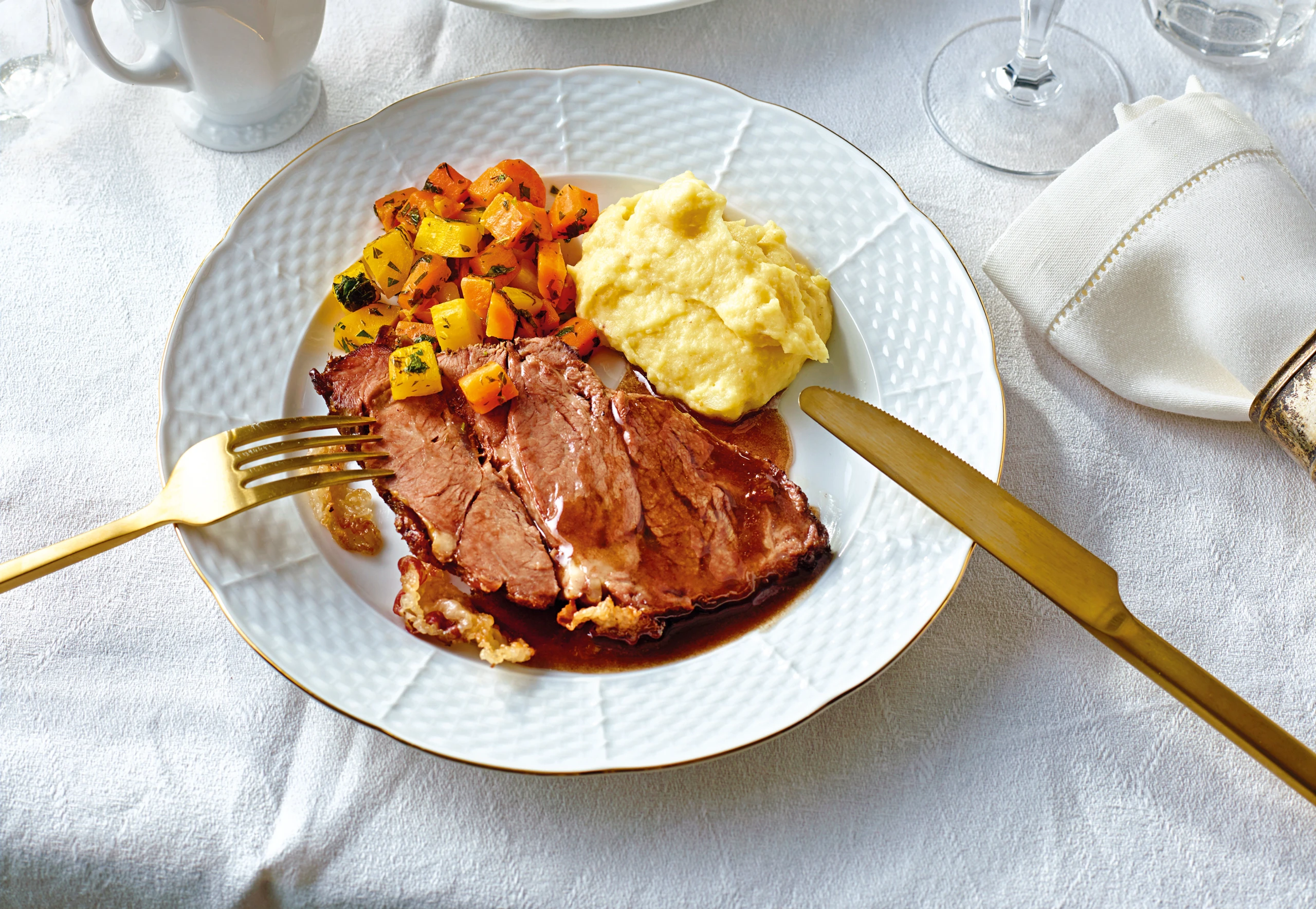 Rindsbraten mit Pancetta und Pastinaken-Trüffelpüree