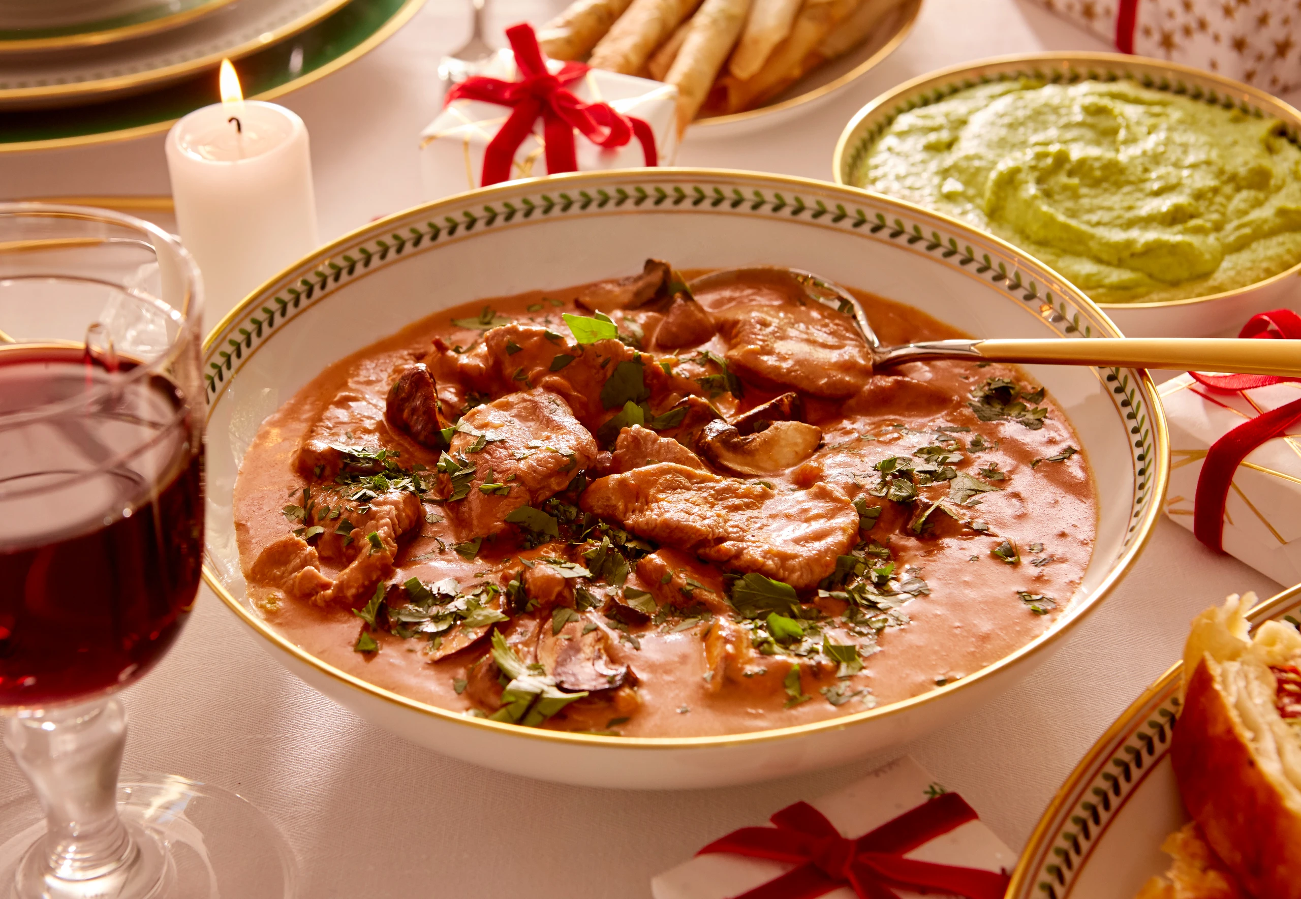 Fleisch in die Sauce geben und kurz erwärmen. Geschnetzeltes mit Petersilie bestreuen und mit dem Püree servieren.