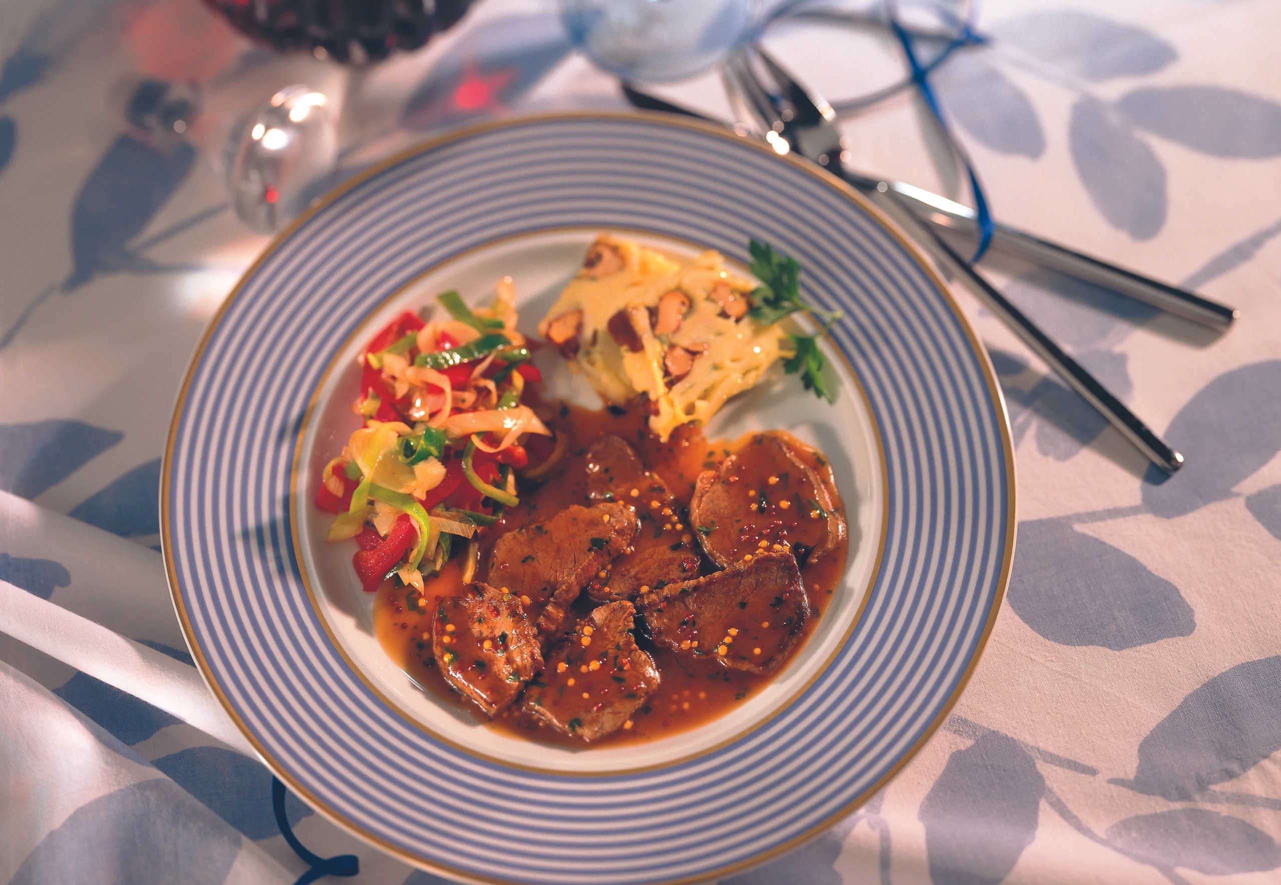 Rindsgeschnetzeltes mit Koriander-Senfsauce
