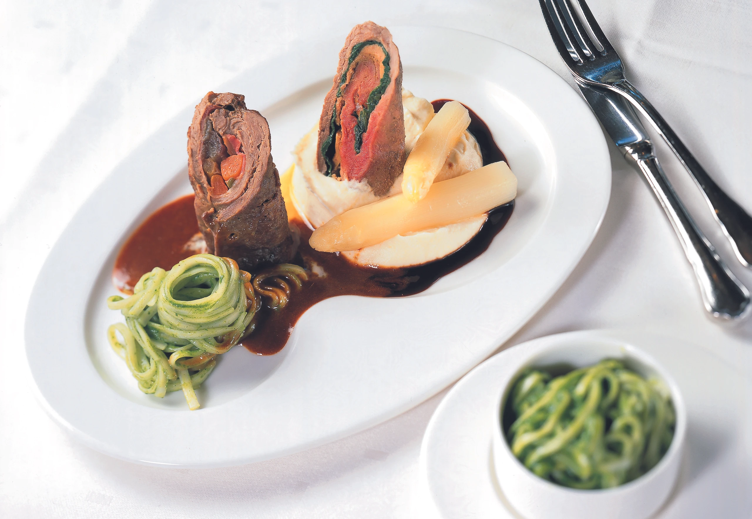 Rouladen aus der Sauce nehmen. Sauce mit Crème fraîche glatt rühren und kurz aufkochen. Sauce abschmecken und durch ein Sieb gießen. Mit den Rouladen anrichten. Dazu passen klassische in Butter geschwenkte Bandnudeln oder Bärlauchnudeln.