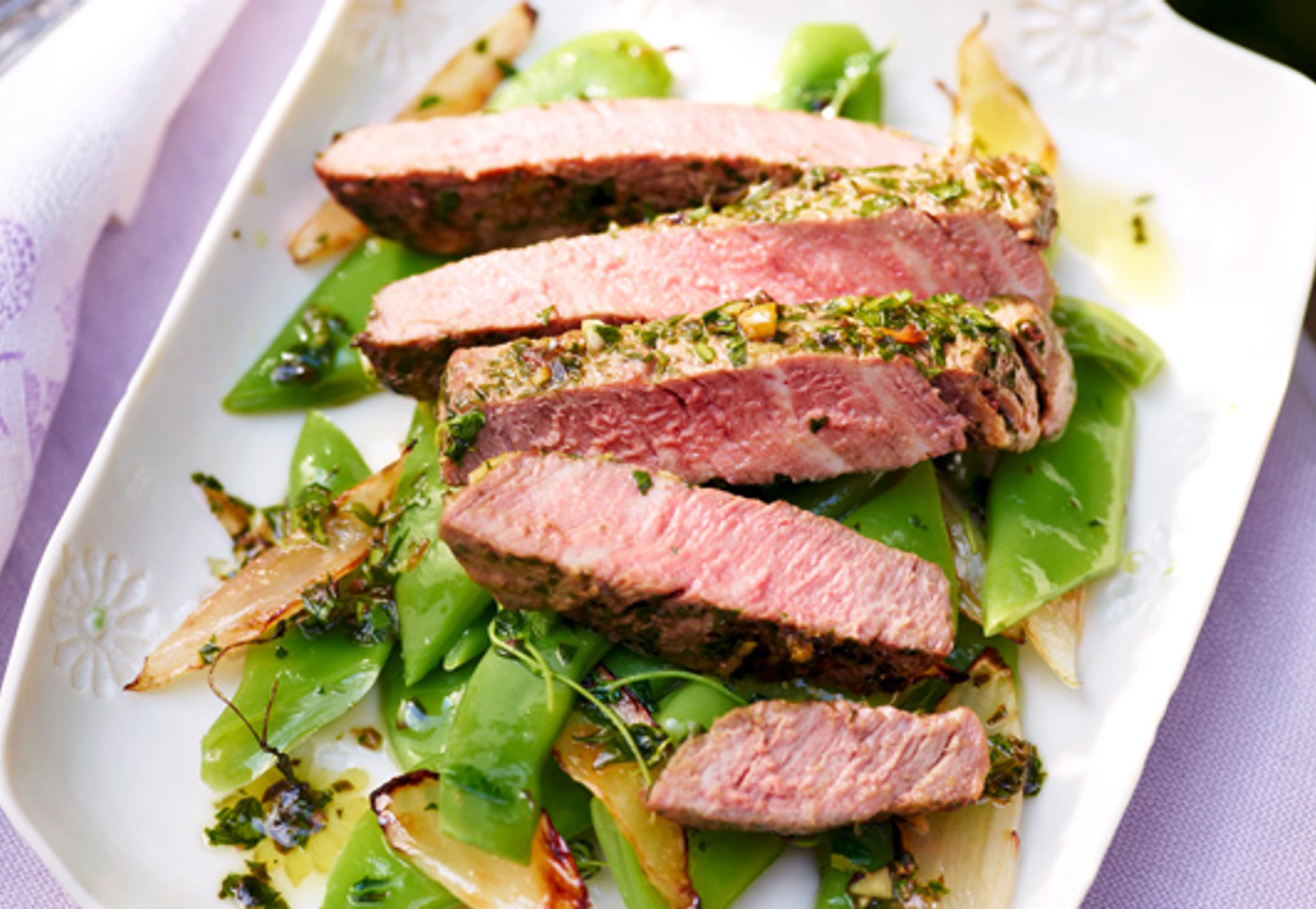 - Zwiebeln in 2 EL Öl anbraten. Fisolen und Majoran untermischen, mitbraten, mit Salz und Pfeffer würzen. Fleisch in Streifen schneiden, mit dem Gemüse anrichten und mit der Sauce beträufeln.