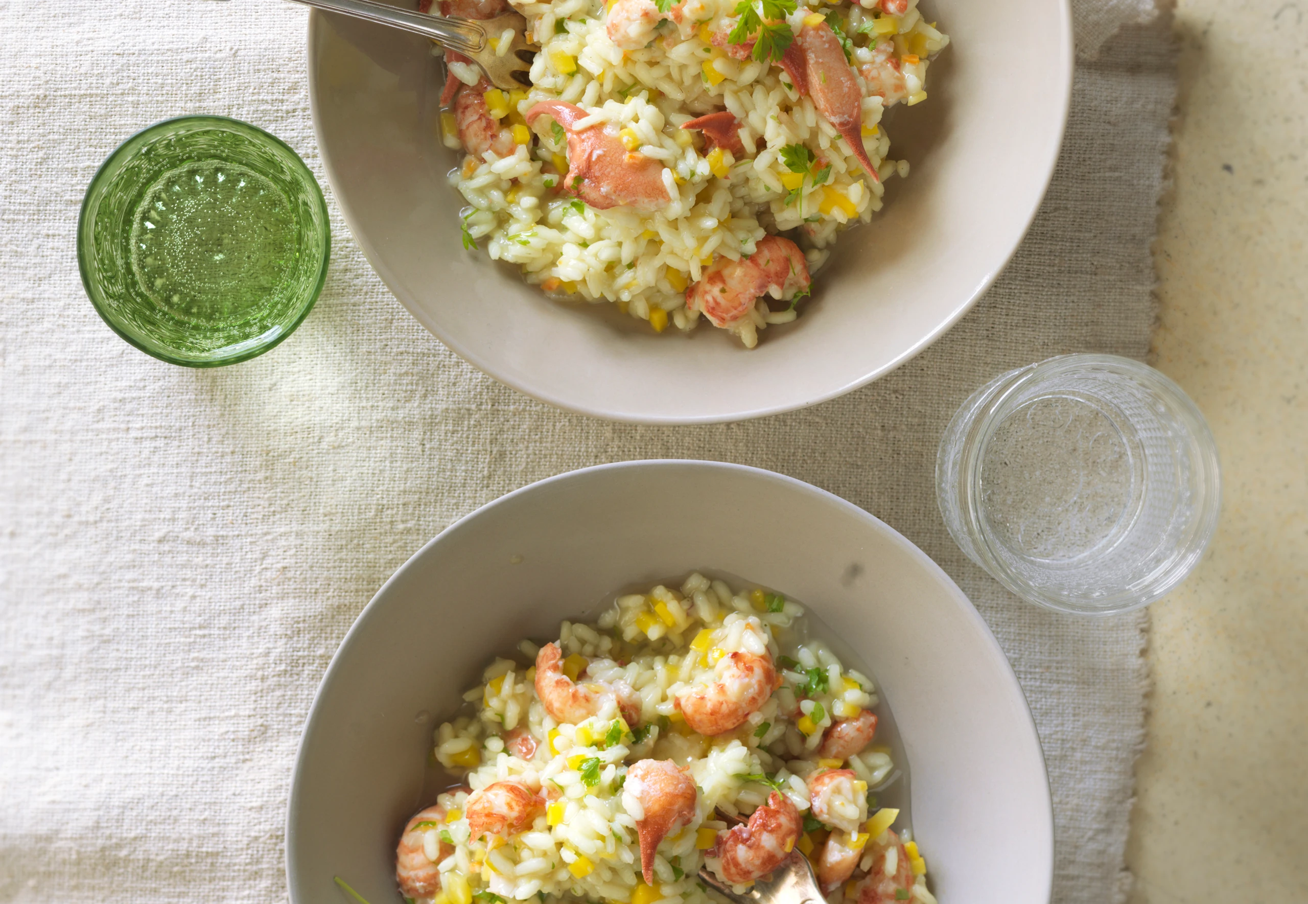Kerbelblättchen von den Stielen zupfen, grob hacken und untermischen. Risotto salzen, pfeffern und anrichten.